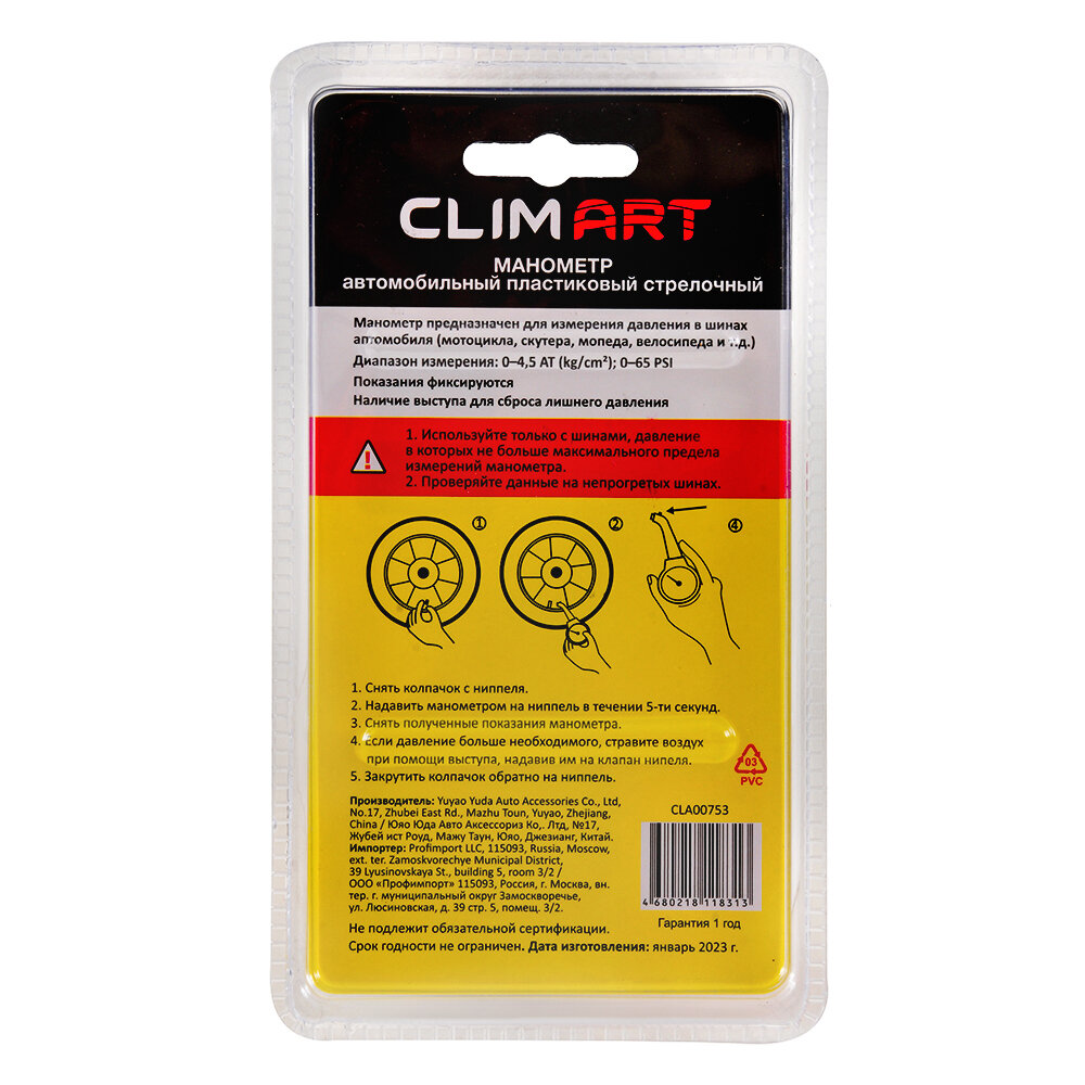 Купить Манометр шинный CLIM ART CLA00753 стрелочный пластиковый