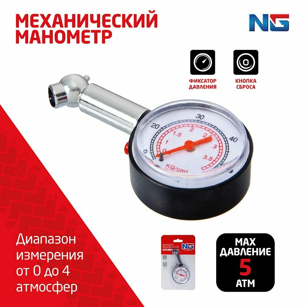 Манометр для шин механический ЕРМАК, до 3.5 атм хром, в блистере