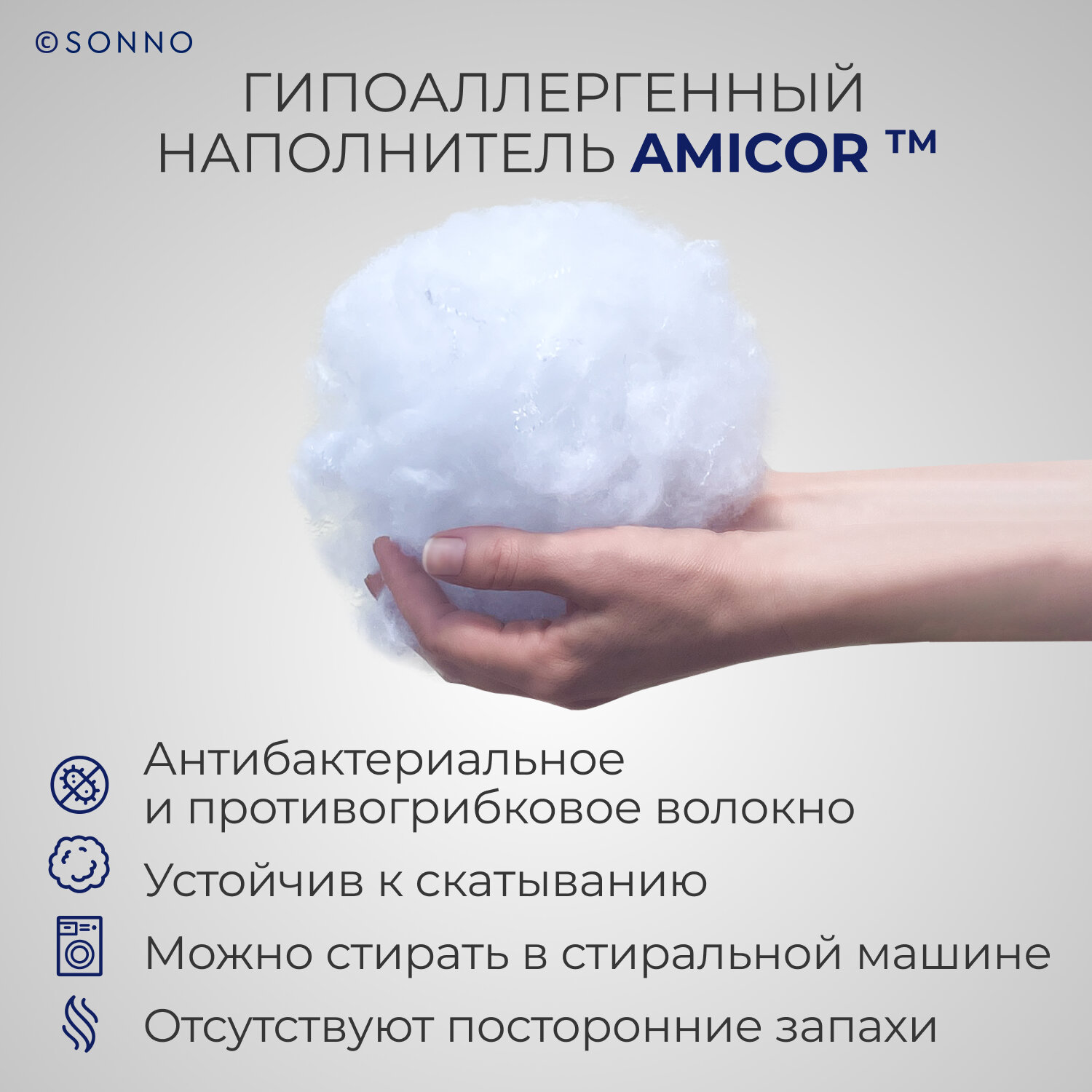 Одеяло SONNO AURA 2-сп. 170х205 гипоаллергенное , наполнитель Amicor TM Цвет Ослепительно белый