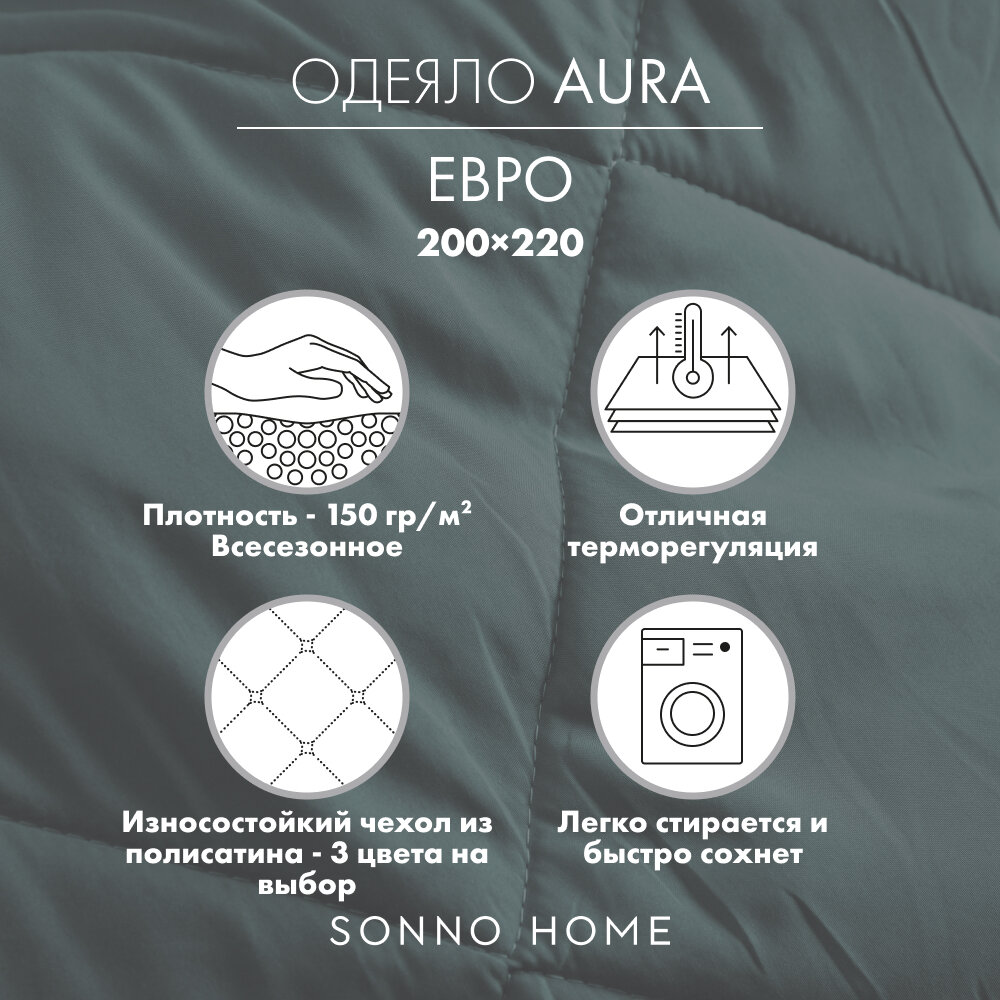СохранитьОдеяло SONNO AURA, евро-размер 200х220 см, гипоаллергенное, всесезонное, стеганое, цвет Бельгийский зеленый интересное: