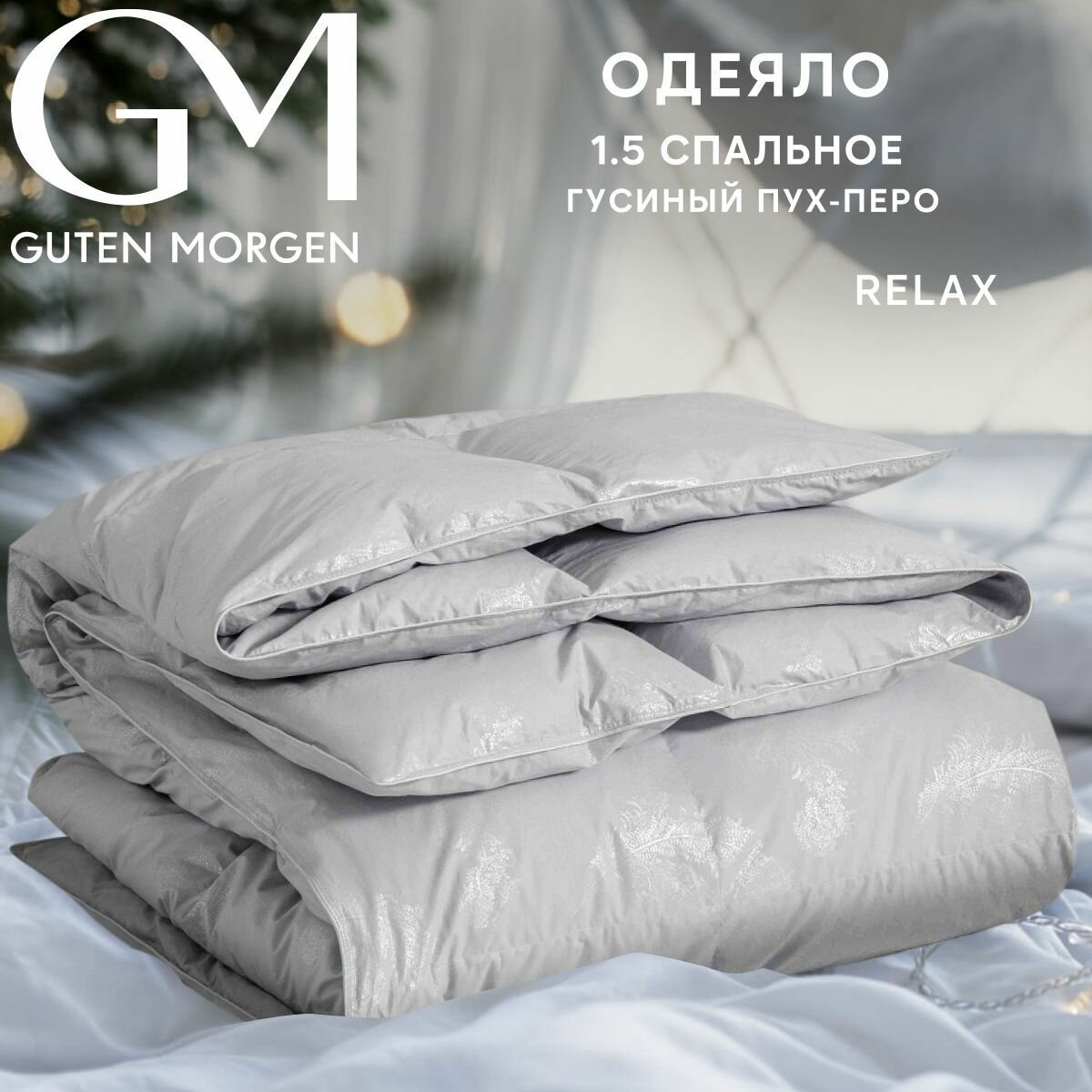 Одеяло 1.5 спальное Guten Morgen Fluffy Relax Silver, наполнитель - гусиный пух, перо, чехол - тик