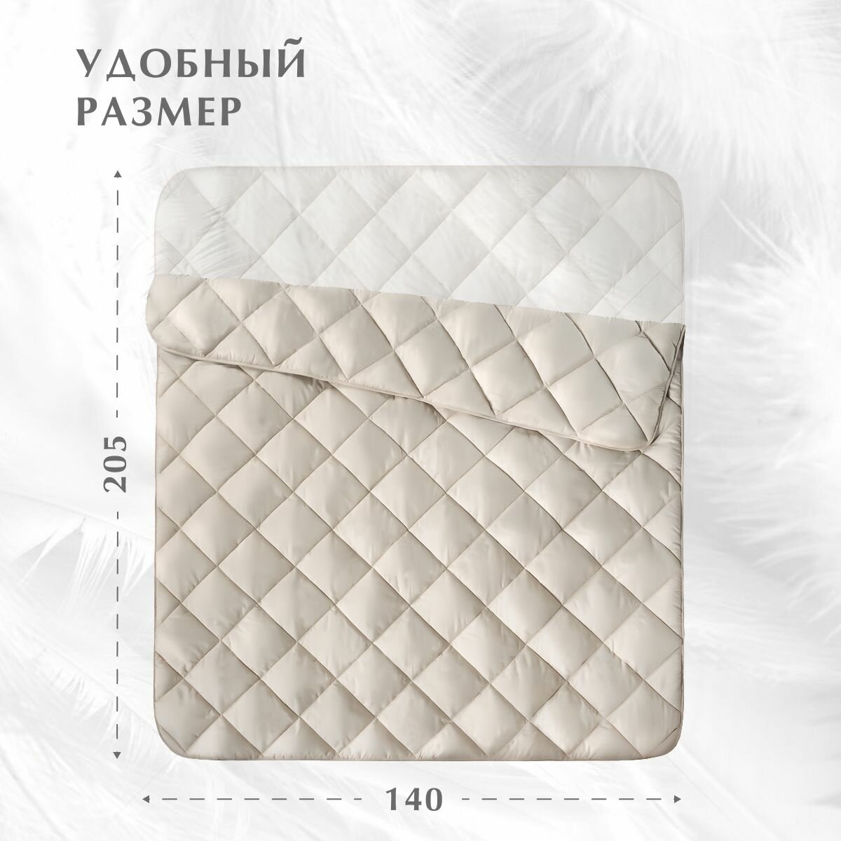 Одеяло Отельное лебяжий пух Кассетного типа 170х205 см, двуспальное 300гр/м2 / Horeca одеяло для отелей и гостиниц