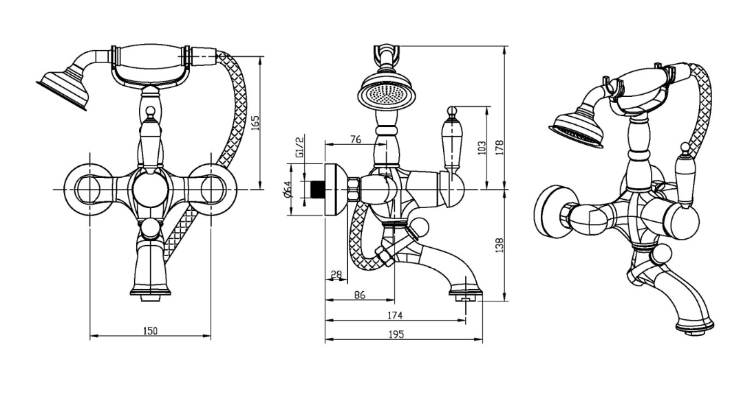 Смеситель для ванны Boheme Tradizionale Oro 283 интересное: