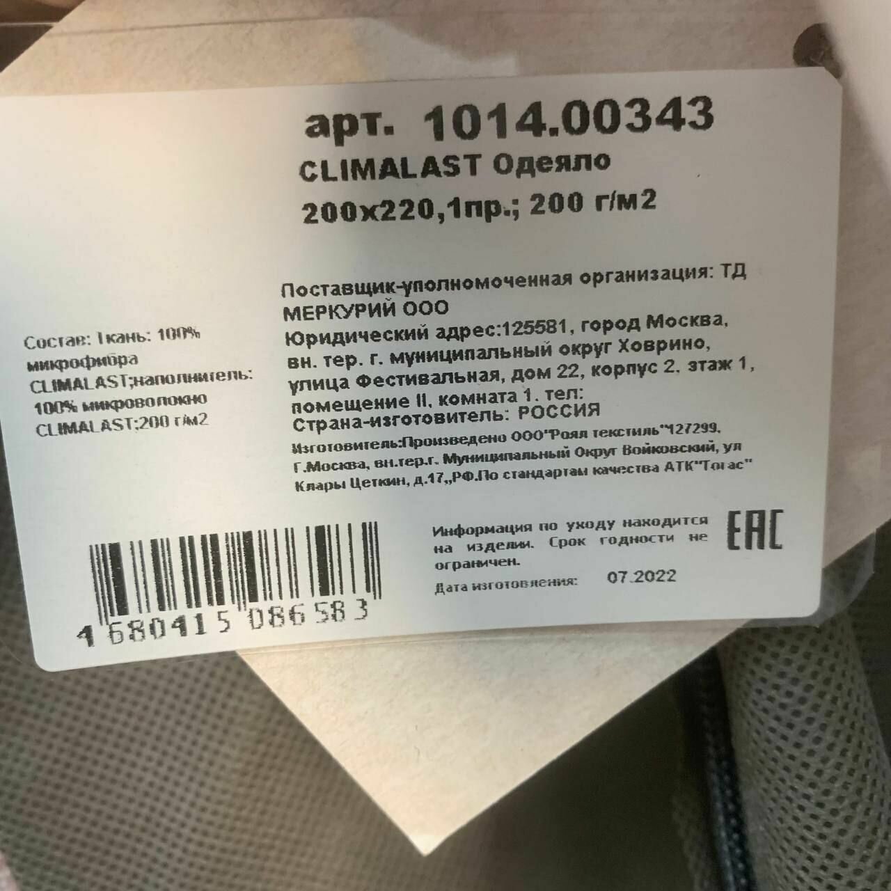 PRIME PRIVE Одеяло "CLIMALAST" Всесезонное, с наполнителем Силиконизированное волокно 200x220 см, 1 - шт.