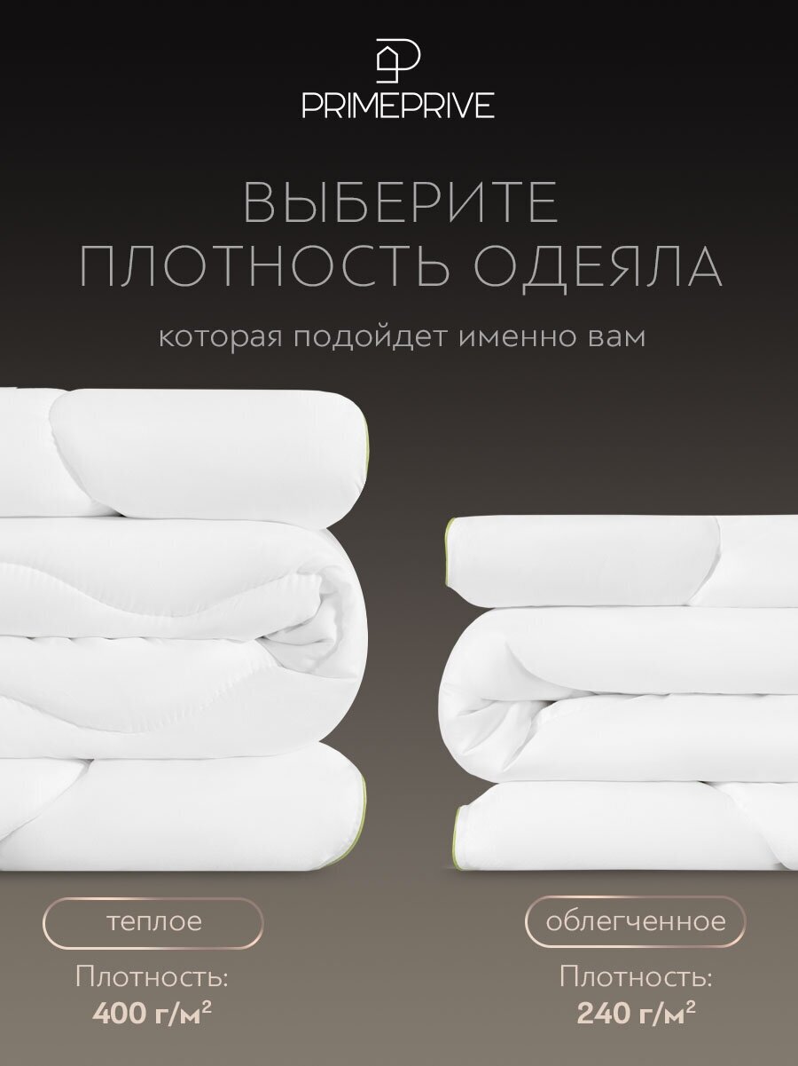 PRIME PRIVE Одеяло полуторное, всесезонное "Bamboo" теплое 240 г/м2, бамбуковое волокно, микроволокно "Climafiber", 140x205