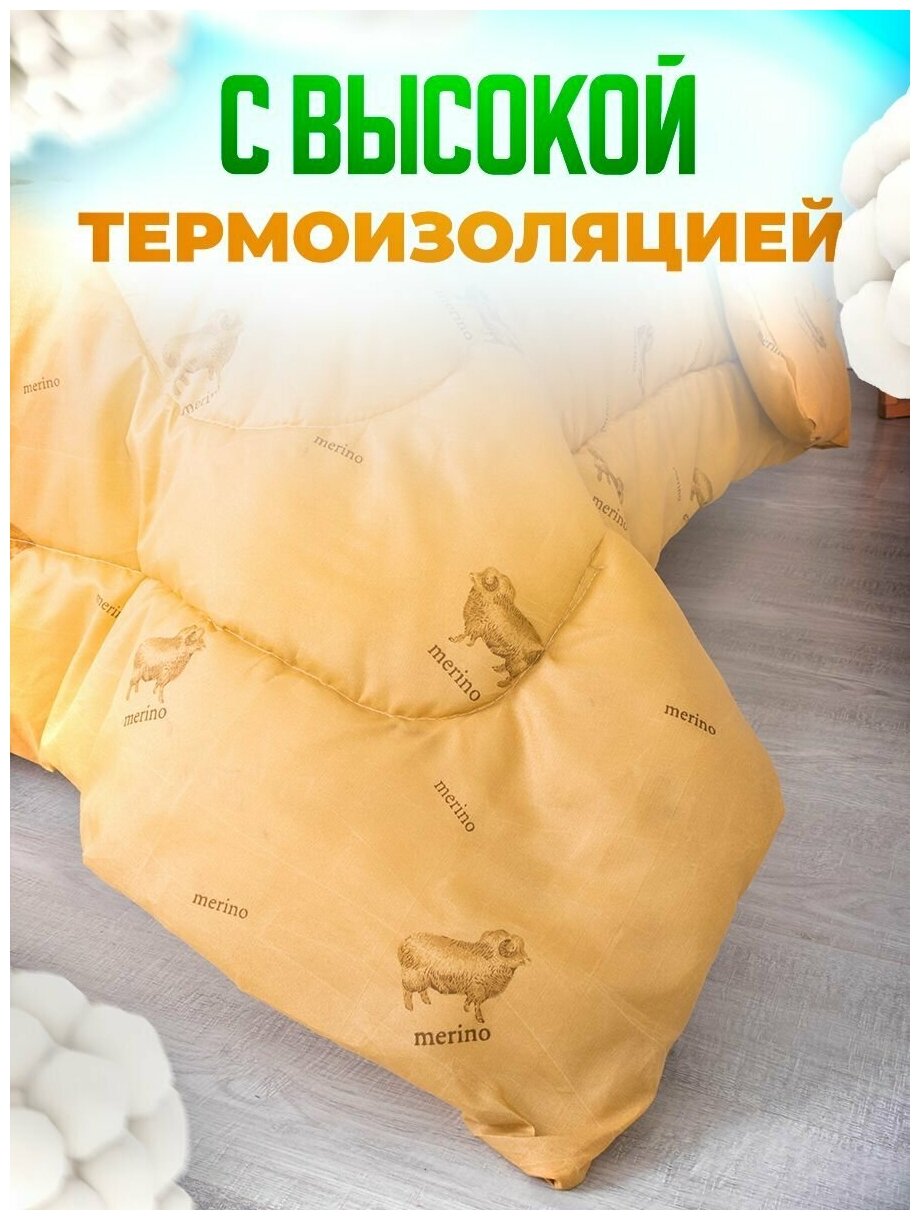 Одеяло 2 спальное 172x205 всесезонное овечья шерсть