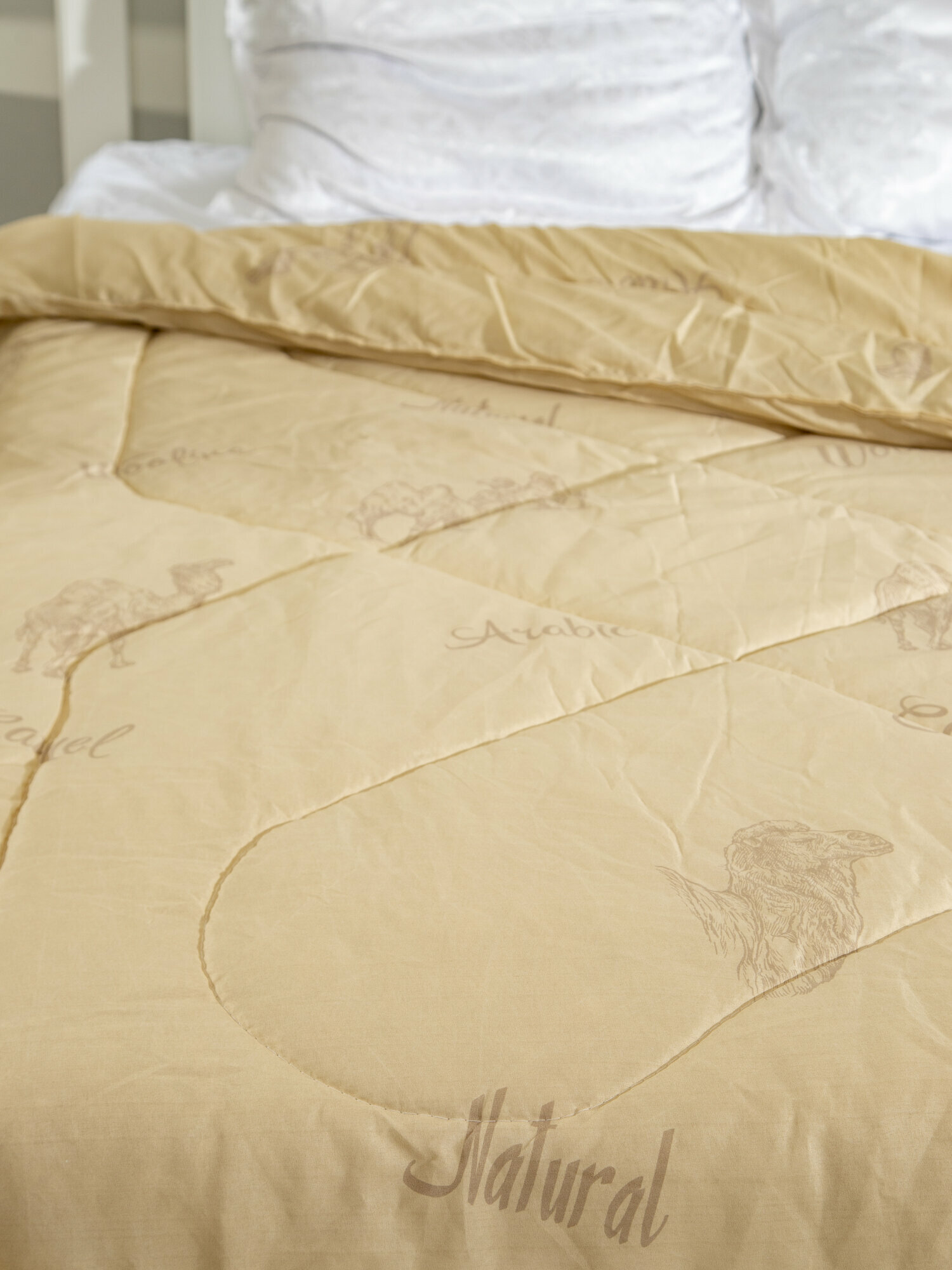 Одеяло 1,5 спальное (145x205), чехол: 100% п/э, наполнитель: полиэфирное волокно, верблюжья шерсть, цвет светло-коричневый