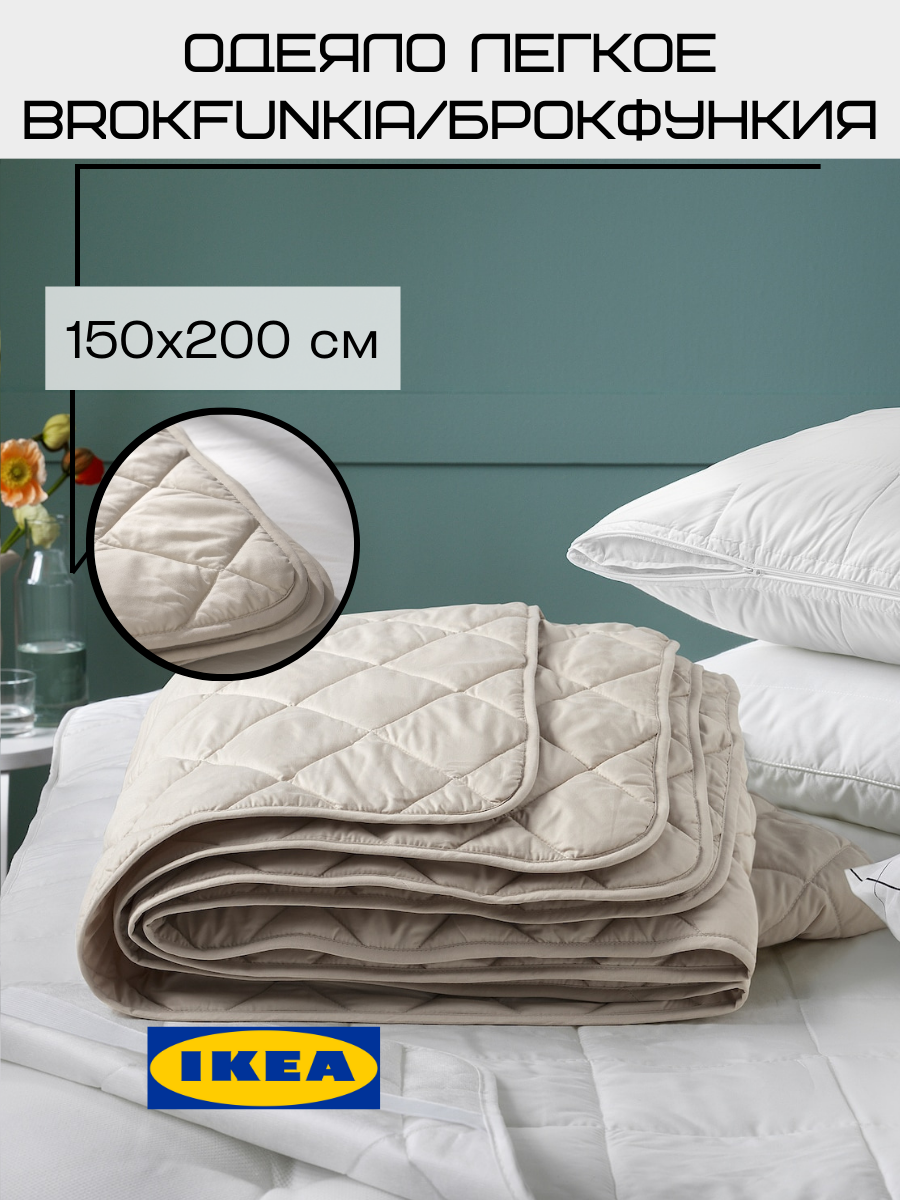 Одеяло 1.5 спальное икеа 150х200 см BROKFUNKIA бежевый интересное: