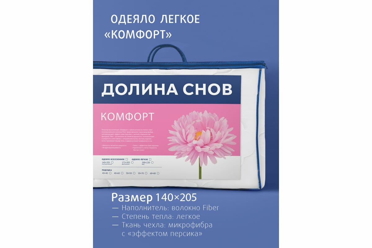 СохранитьОдеяло летнее облегченное волокно силиконизированное 1,5-спальное (140x205 см) Долина снов "Комфорт", чехол - микрофибра (100% п/э), Ecotex интересное: