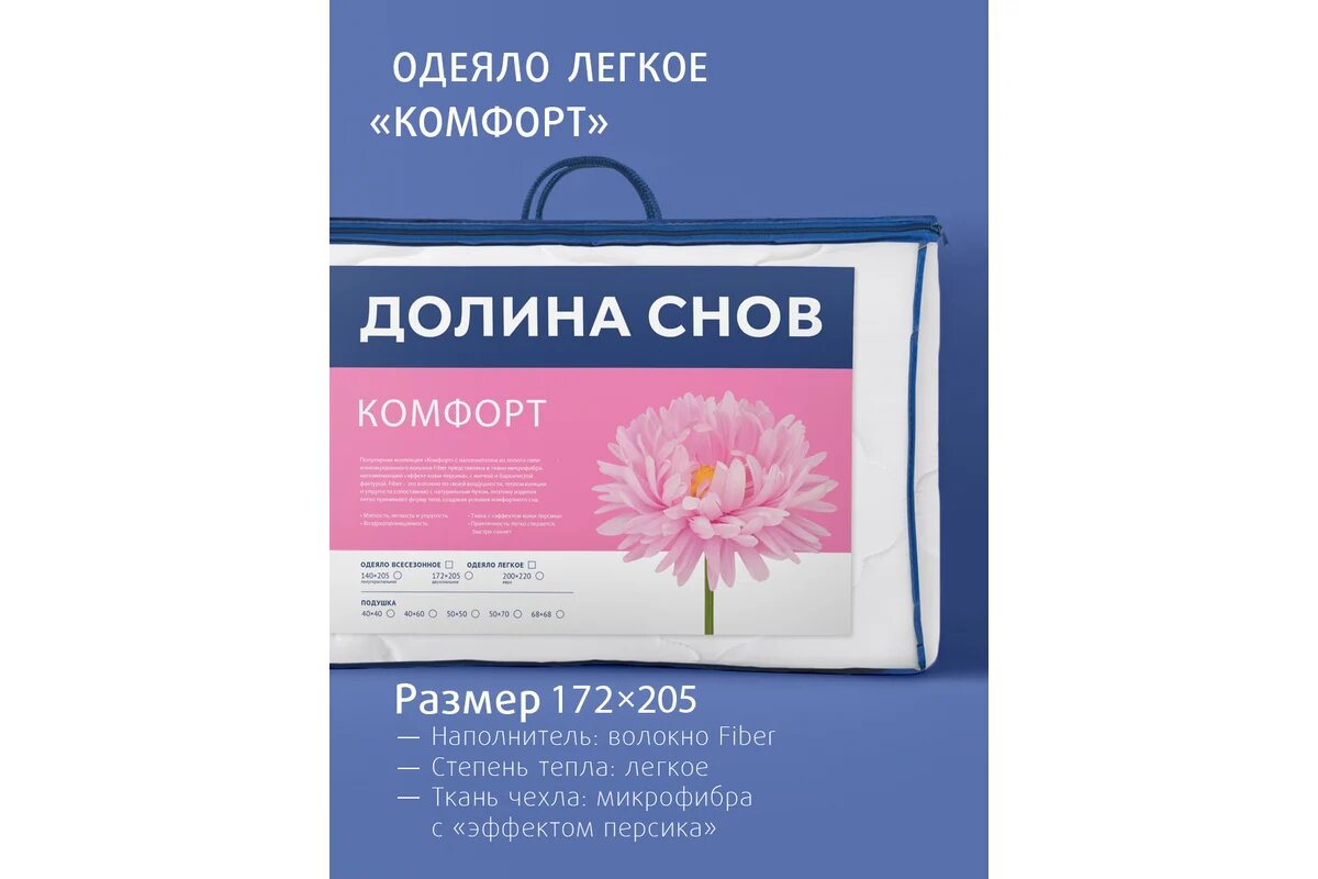 СохранитьОдеяло летнее облегченное волокно силиконизированное 2-спальное (172х205 см) Долина снов "Комфорт", чехол - микрофибра (100% п/э), Ecotex интересное: