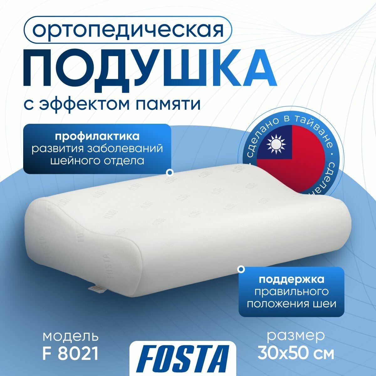 Подушка ортопедическая с эффектом памяти Fosta F 8021, 30х50 см, высота 10 и 12 см 50x30 см, Белый интересное: