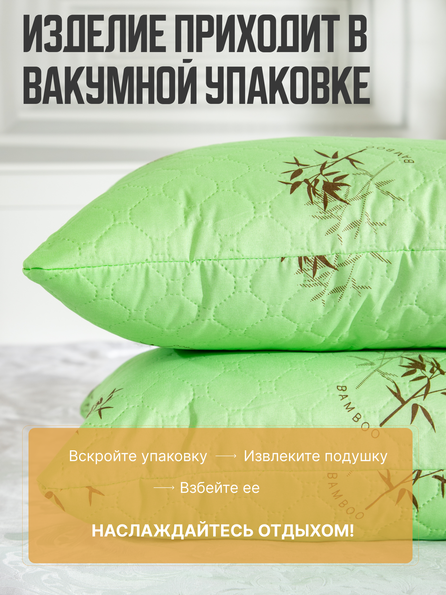 Набор подушек 50x70 2 штуки, чехол 100 % п/э, наполнитель: полиэфирное волокно, бамбуковое волокно, цвет зеленый интересное: