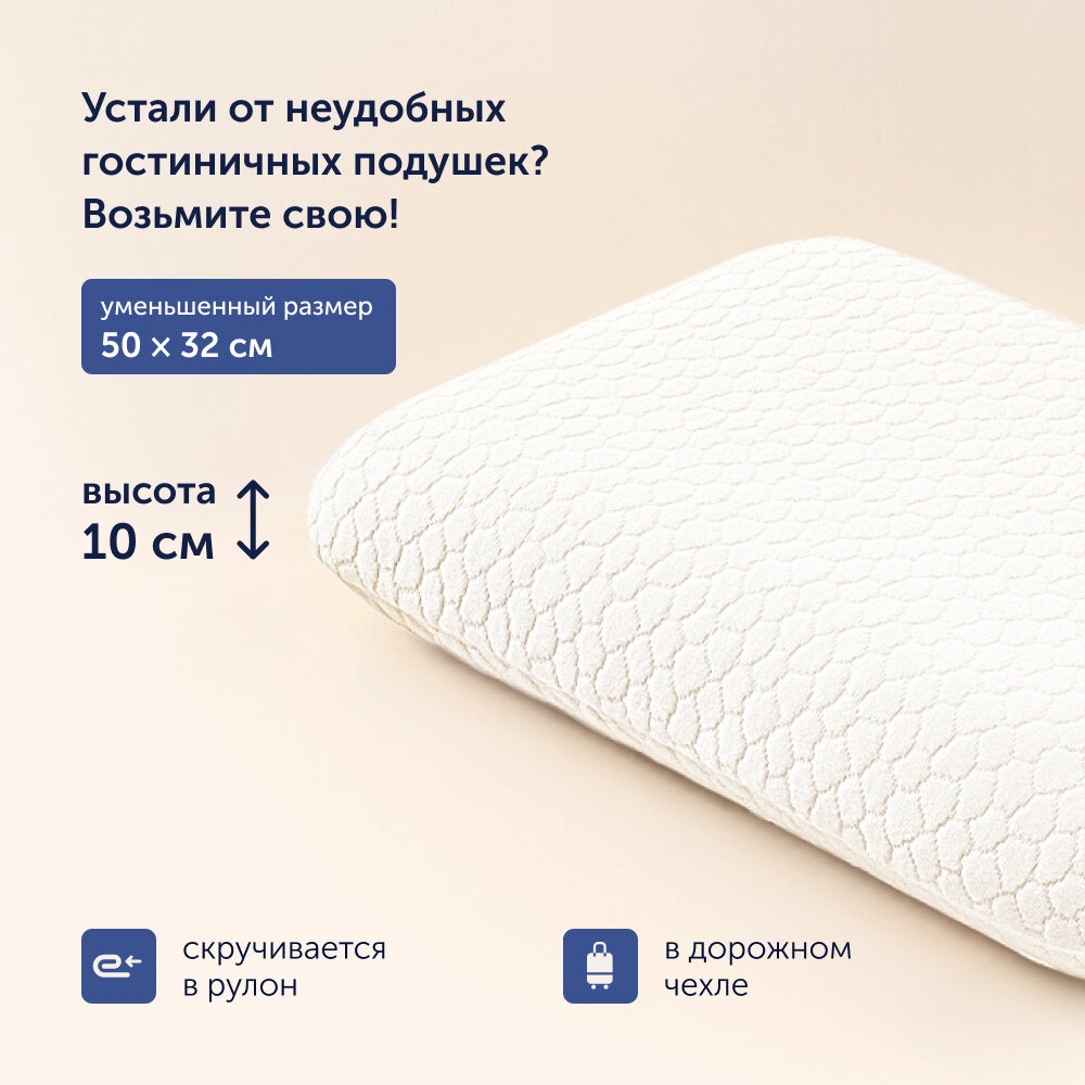 Пенная ортопедическая подушка для путешествий, buyson family, BuyTravel 32х50 см, высота 10 см, в дорожном чехле интересное: