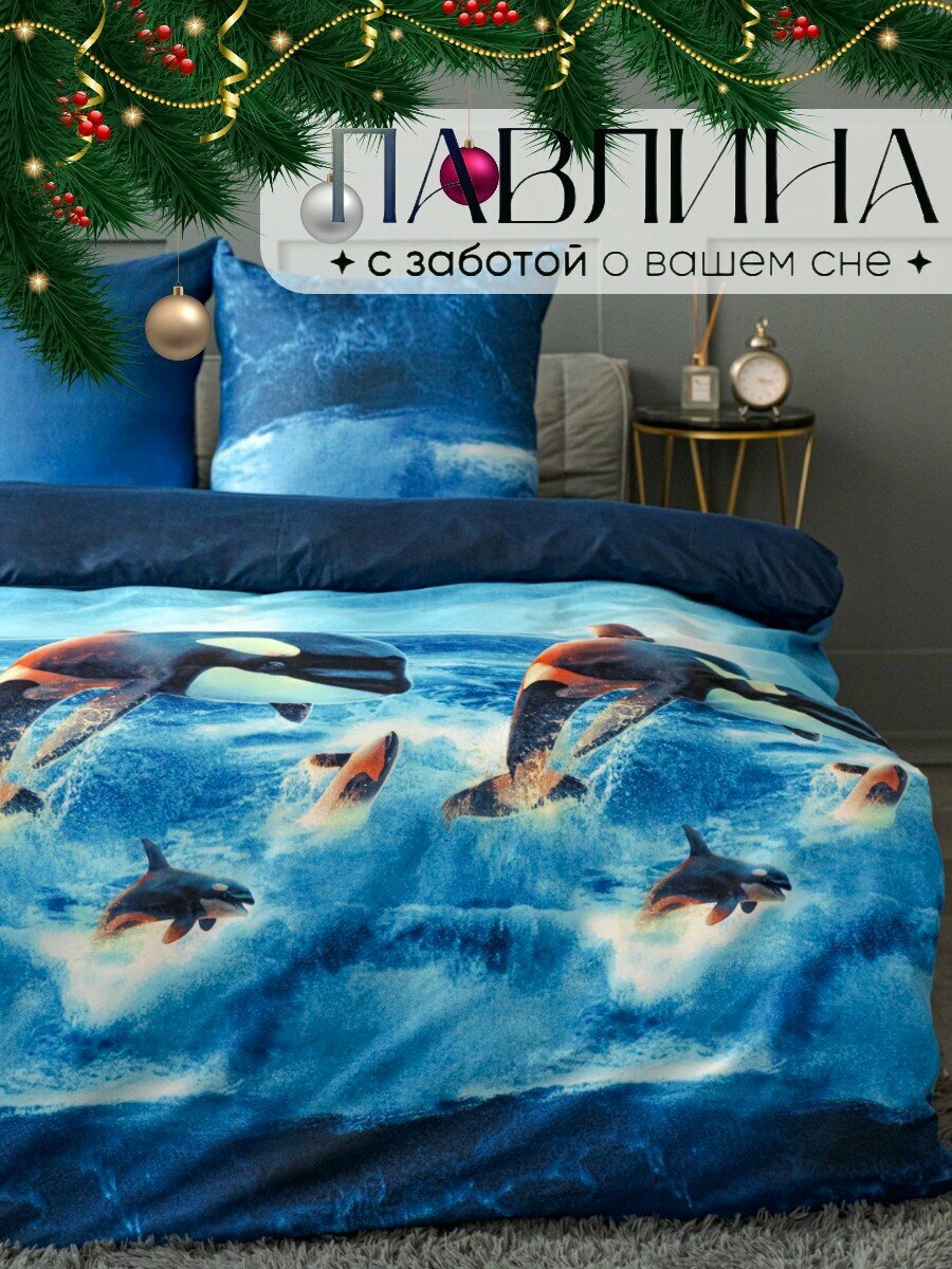 Постельное белье евро Павлина Дельфины, Полисатин, наволочки 70x70 интересное: