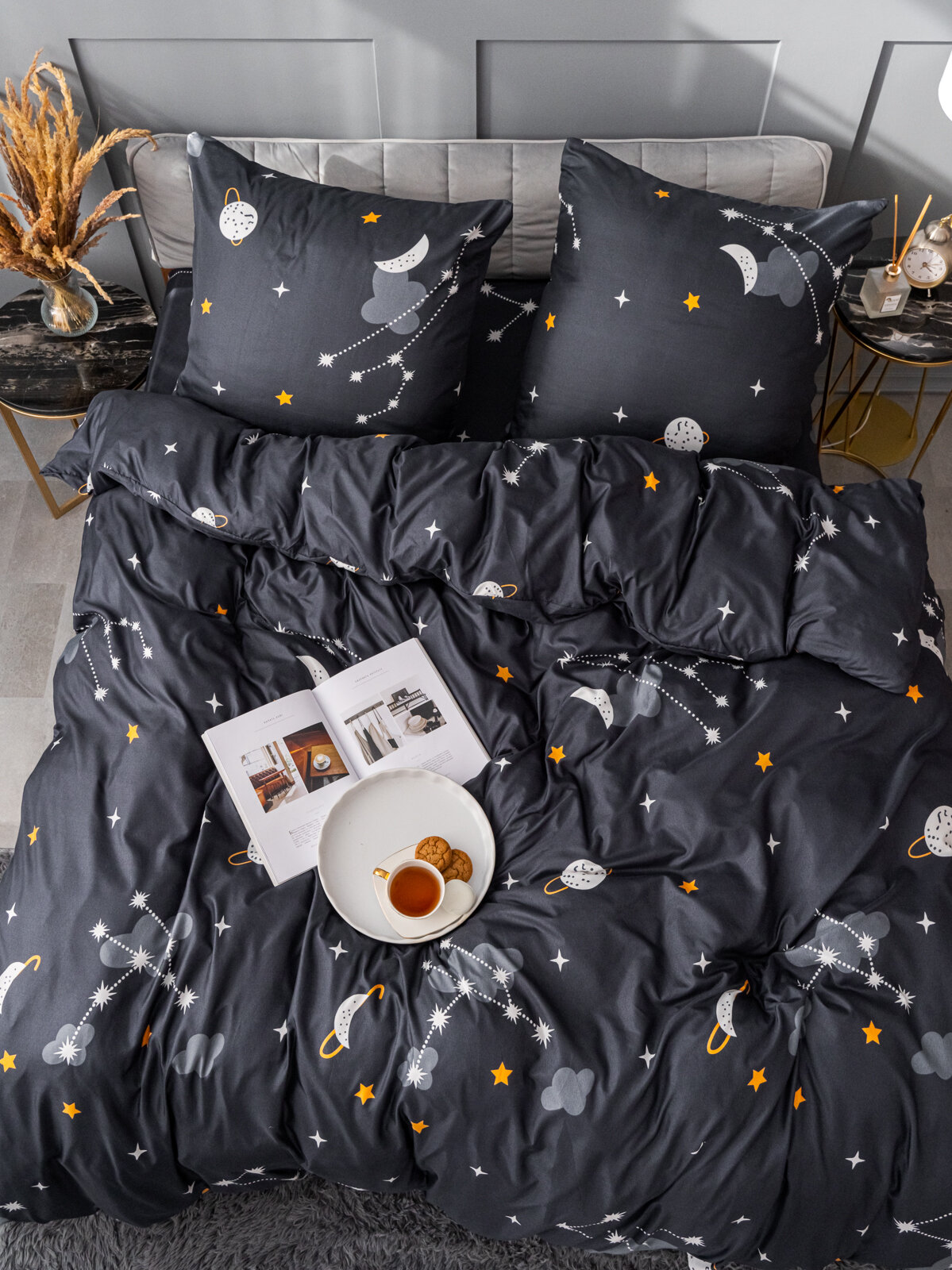 Постельное белье 2 спальное Павлина полисатин Звезды рис 9348, черный интересное: