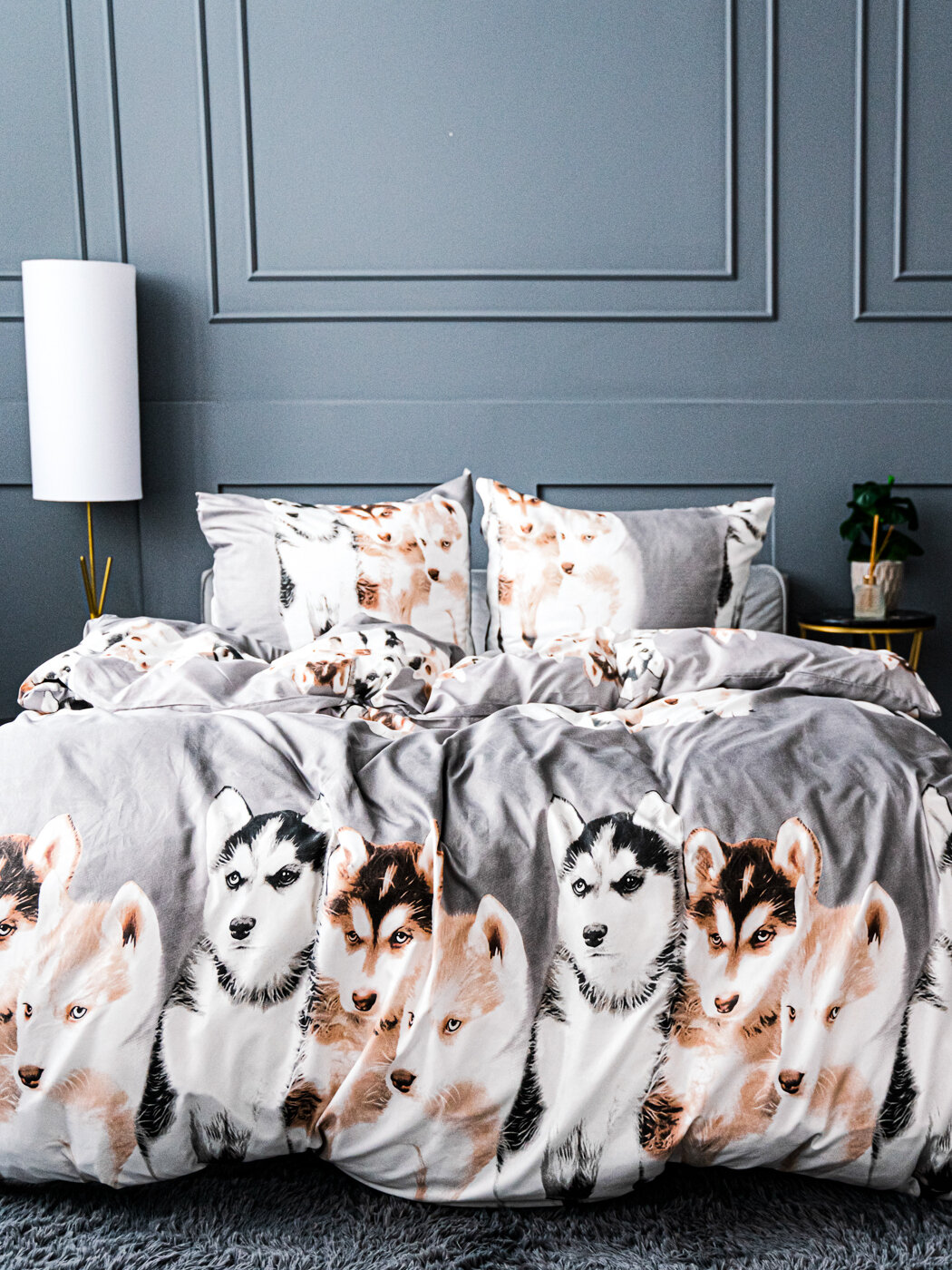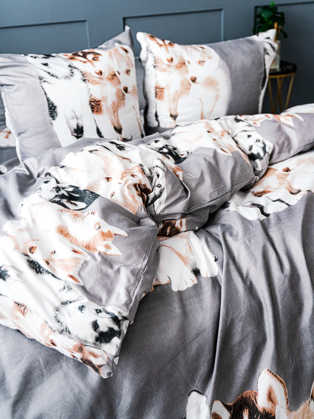 Постельное белье 2 спальное Павлина полисатин Хаски рис 2466, серый интересное: