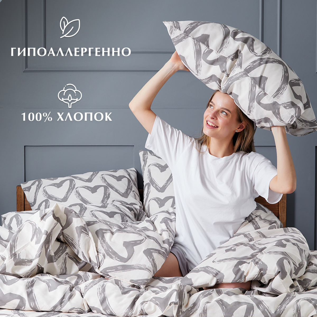 Постельное белье, Бязь, 1.5 спальное, 2 наволочки 70х70, GM, In love 100% хлопок IKEA,