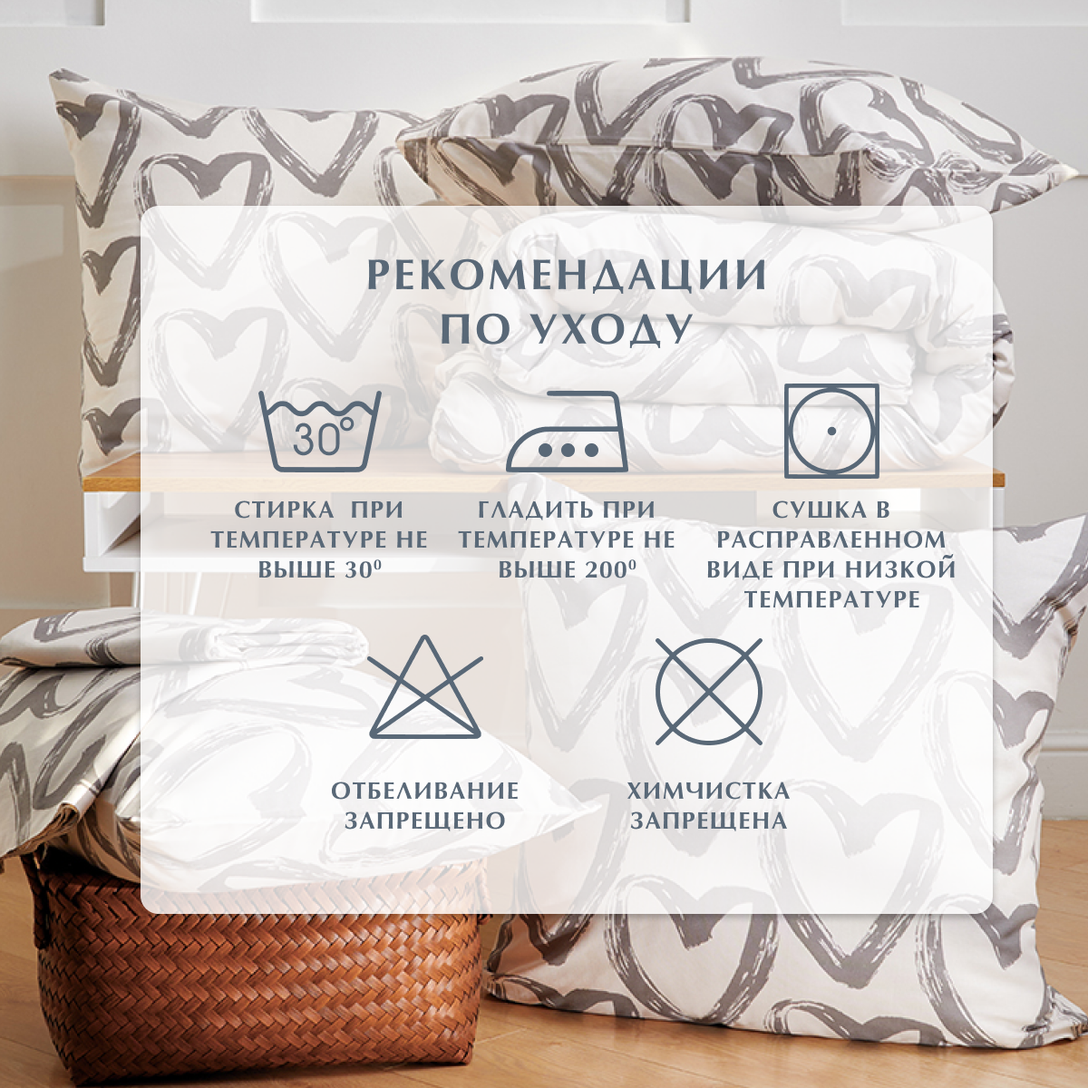 Постельное белье 1.5 спальное, Бязь, Guten Morgen, In love, наволочки 50х70, 100% хлопок IKEA