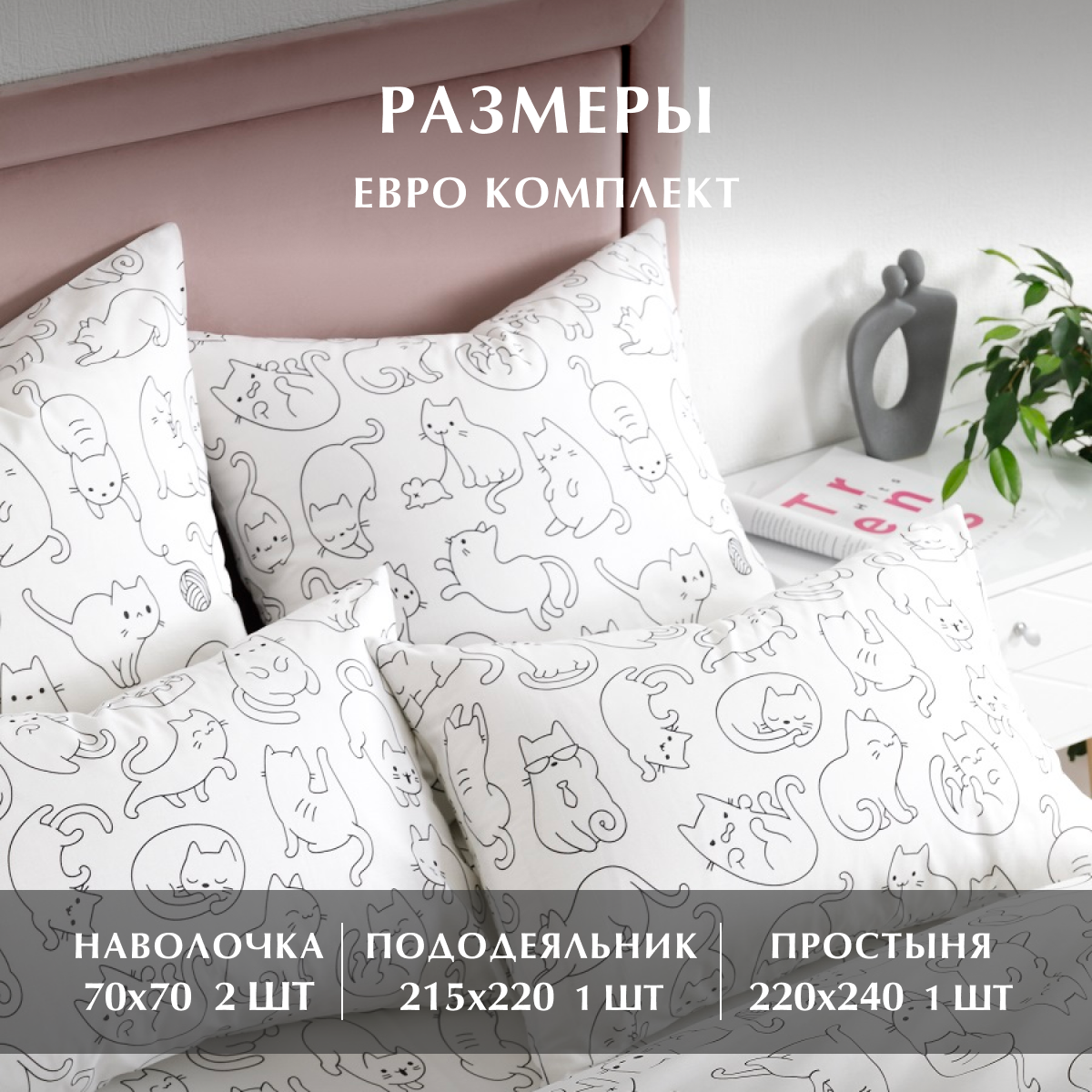 Постельное белье 2 спальный комплект с Евро простыней Бязь Guten Morgen Cat party, наволочки 50х70, 100% хлопок