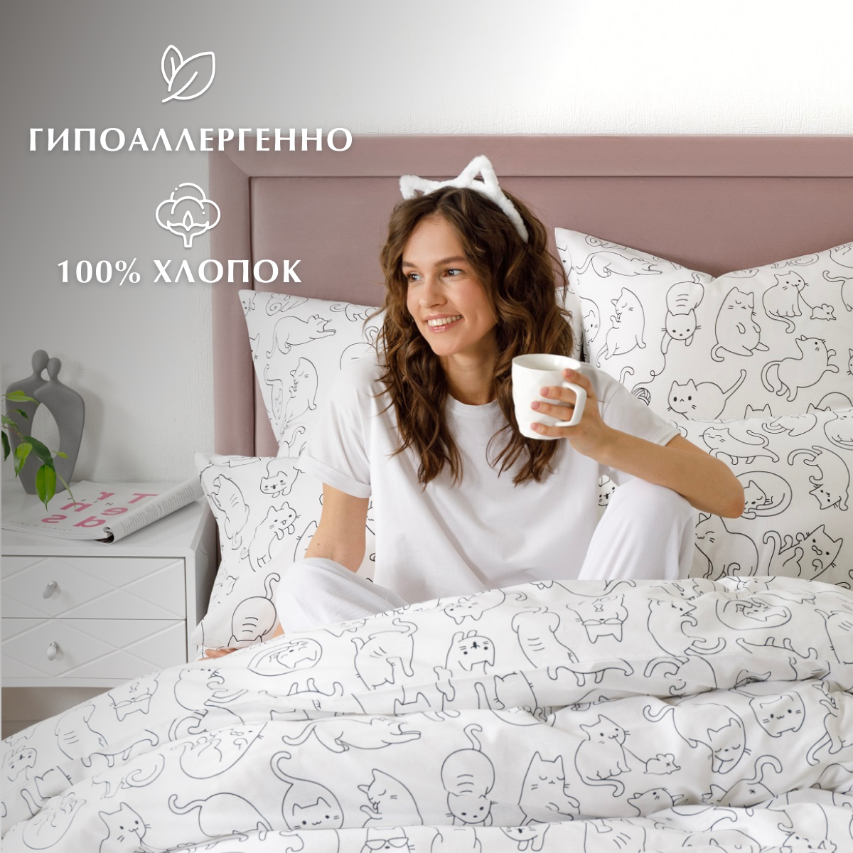 СохранитьКомплект постельного белья, Бязь, Guten Morgen, 1.5 спальный с нав. 70х70 см, рис.1145, Cat party интересное: