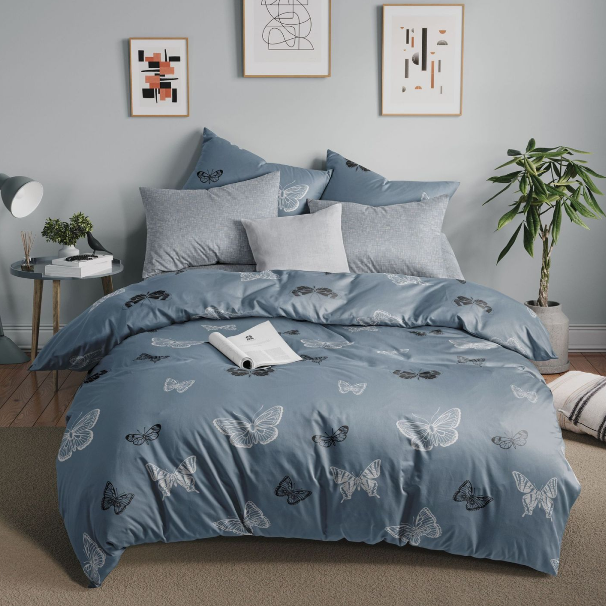Постельное белье, Бязь, 2х спальное, 2 наволочки 50х70, GM, Black and White Butterflies 100% хлопок