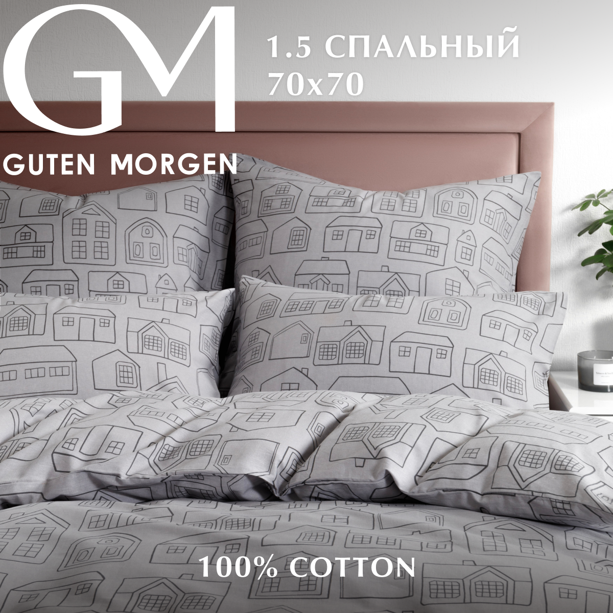 Постельное белье 1.5 спальное Бязь Guten Morgen Hometown, наволочки 70х70, 100% хлопок