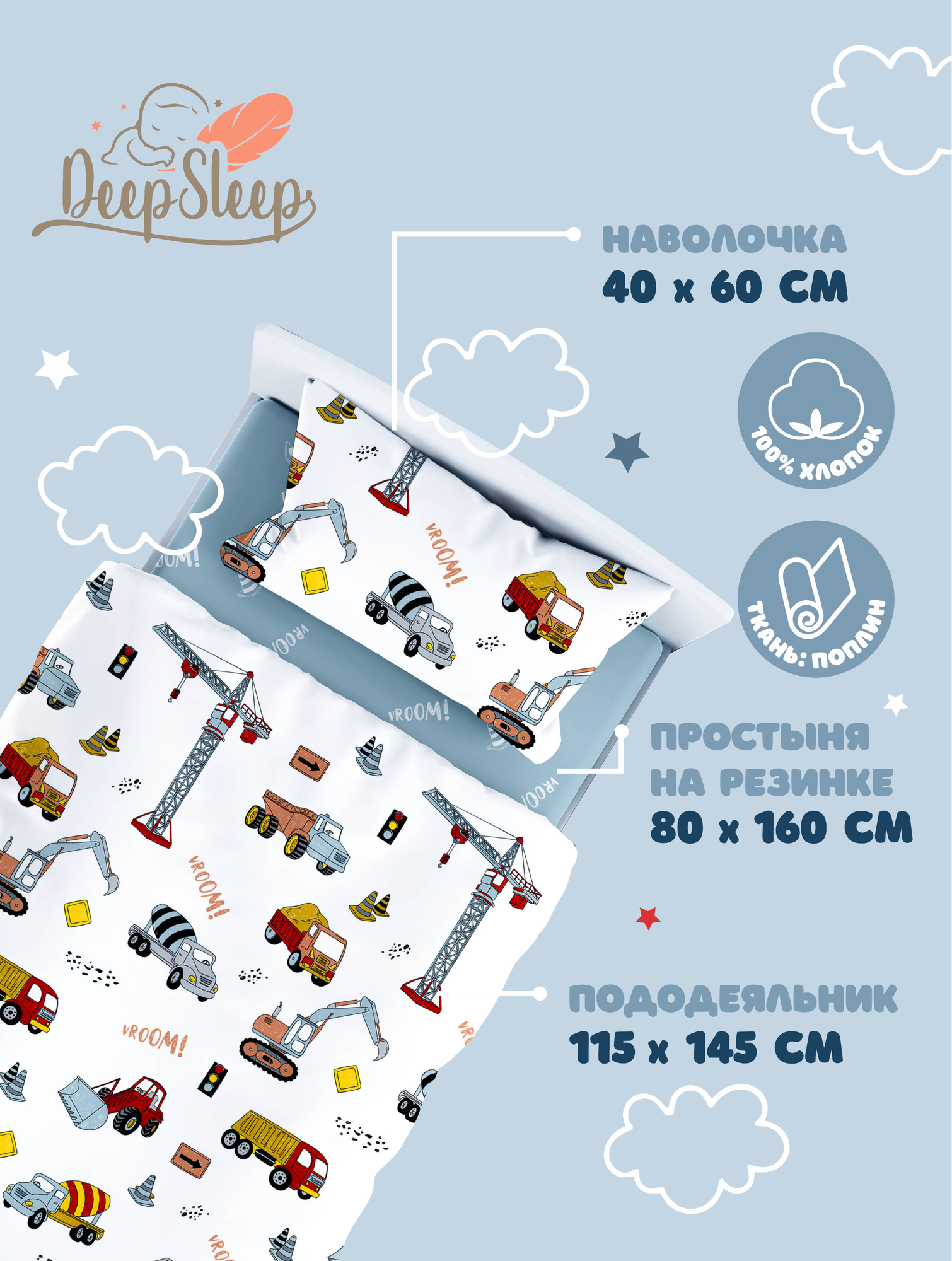 Постельное белье с простыней на резинке 160х80 "Юный строитель" DeepSleep