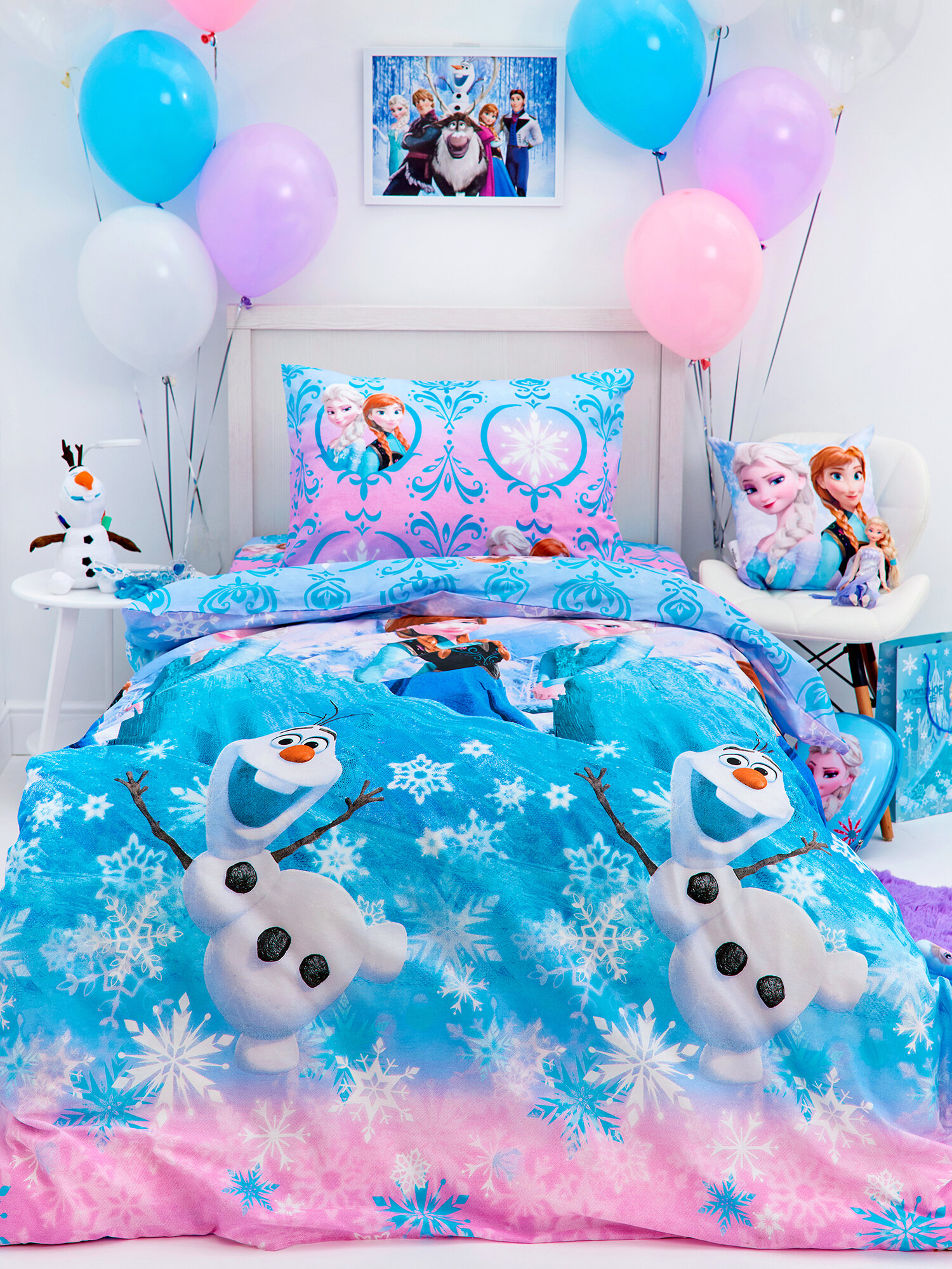 Купить Детское Постельное белье 1.5 спальное Непоседа, Поплин, нав. 70х70, Сестры и Олаф2 (Холодное сердце)