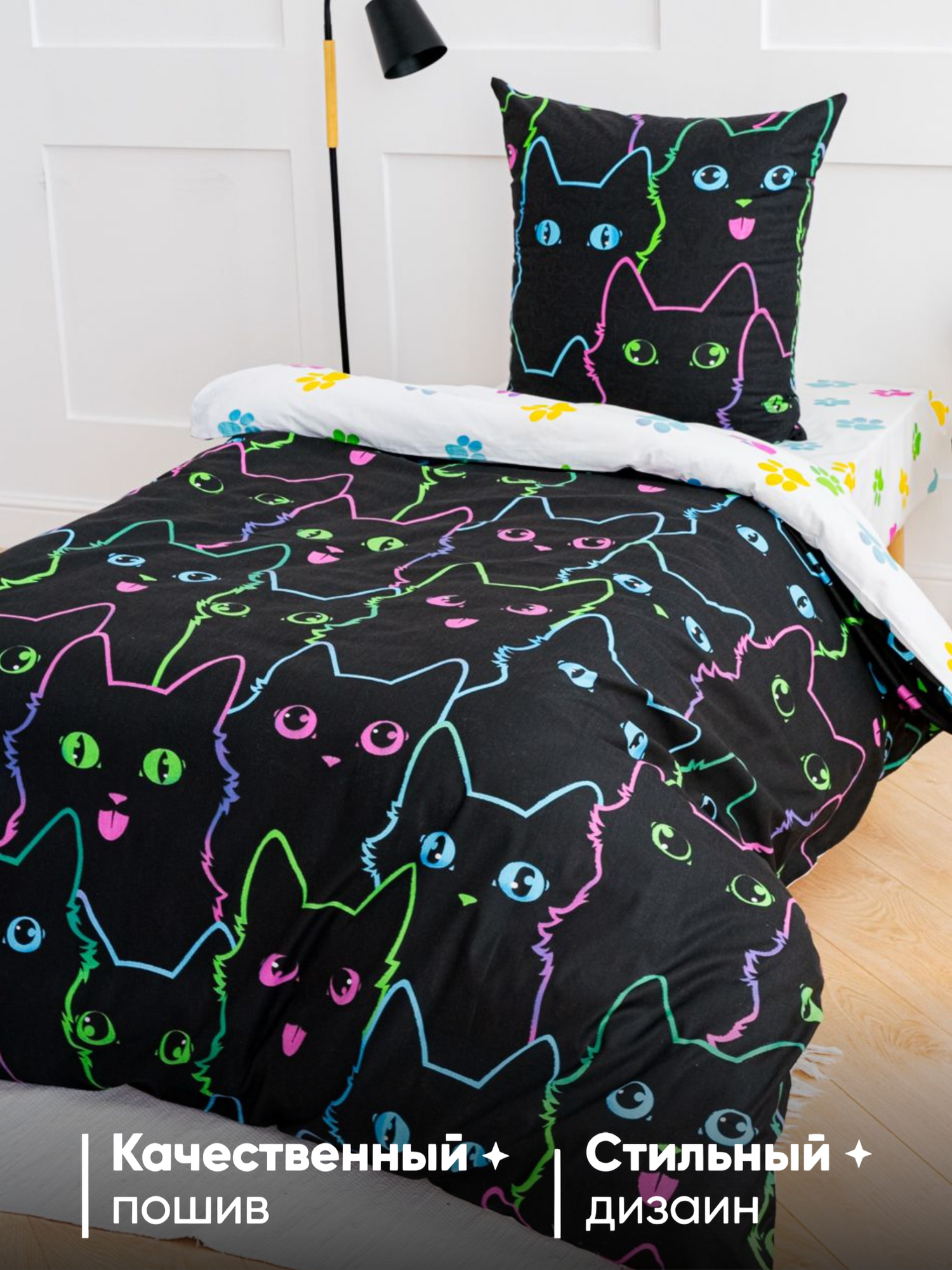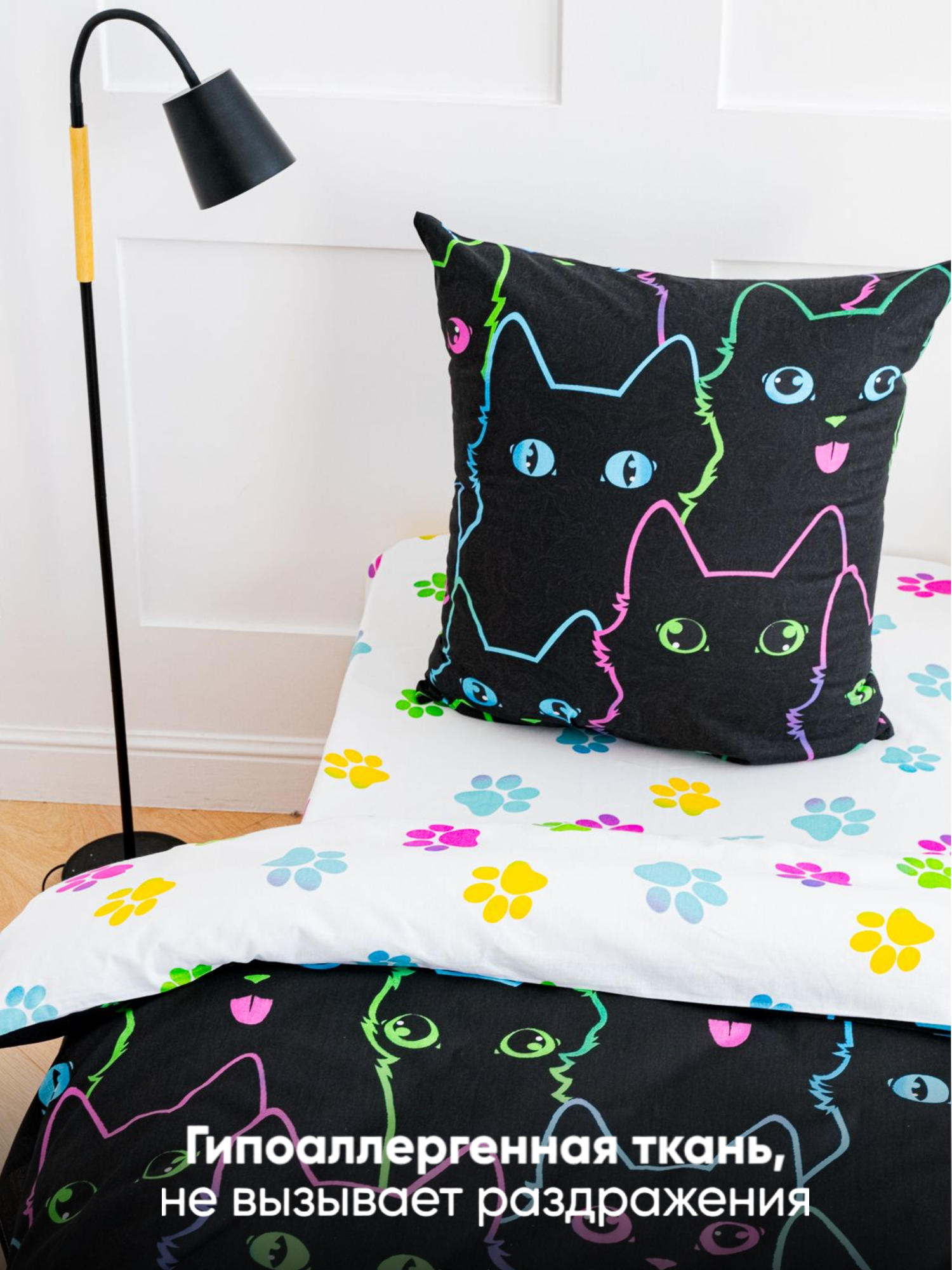 Купить Постельное белье 1.5 спальное детское Павлина Freedom Коты контур 1,5 спальный, бязь, наволочка 70x70