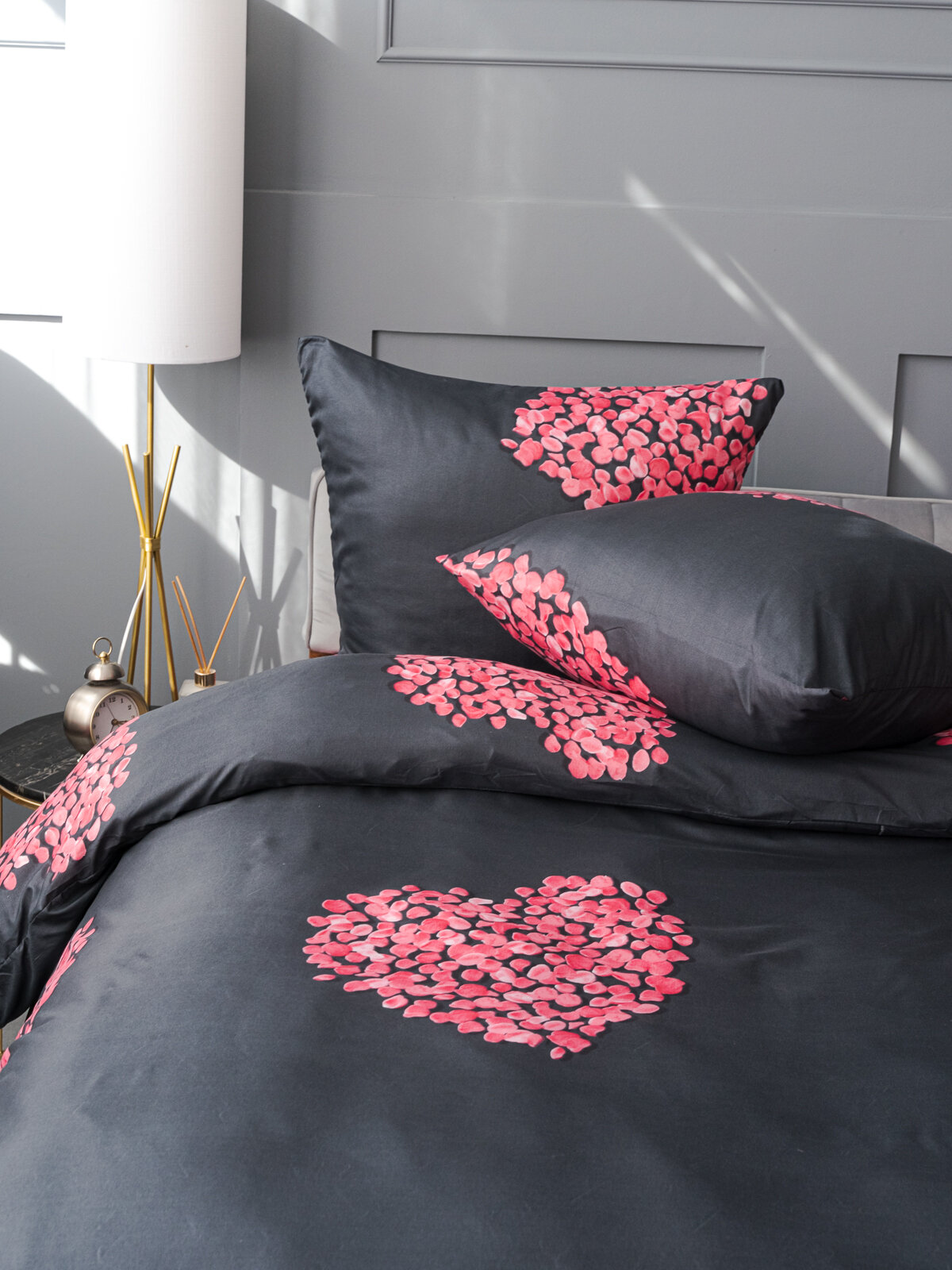 Купить Постельное белье евро Павлина полисатин Сердце рис 8066, черный