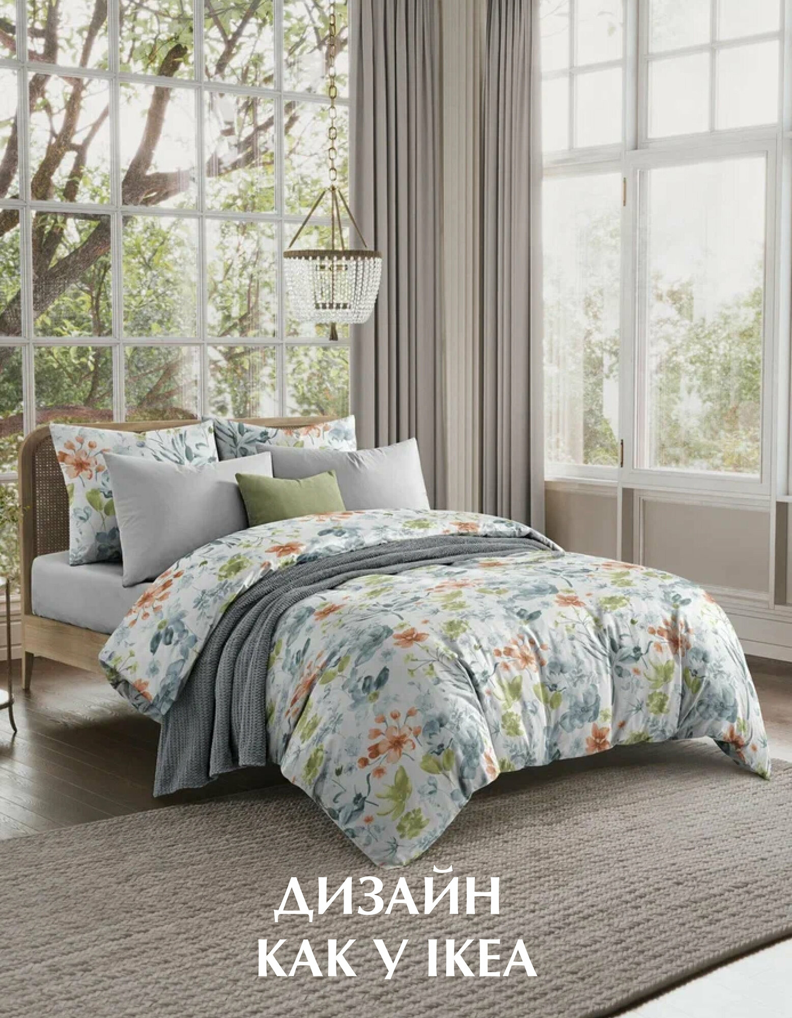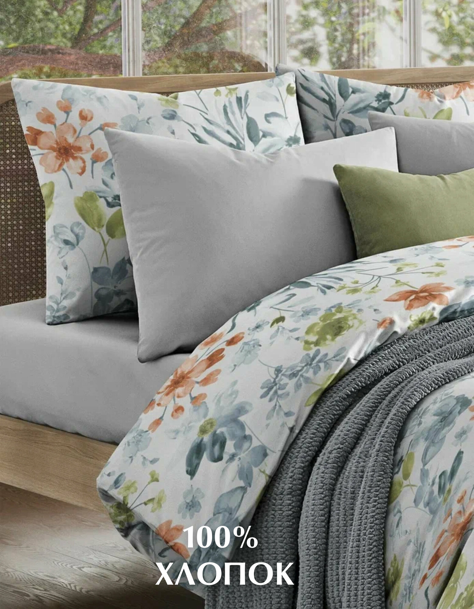 Постельное белье, Поплин, 2х спальное, 2 наволочки 70х70, GM, Цветущий сад 100% хлопок