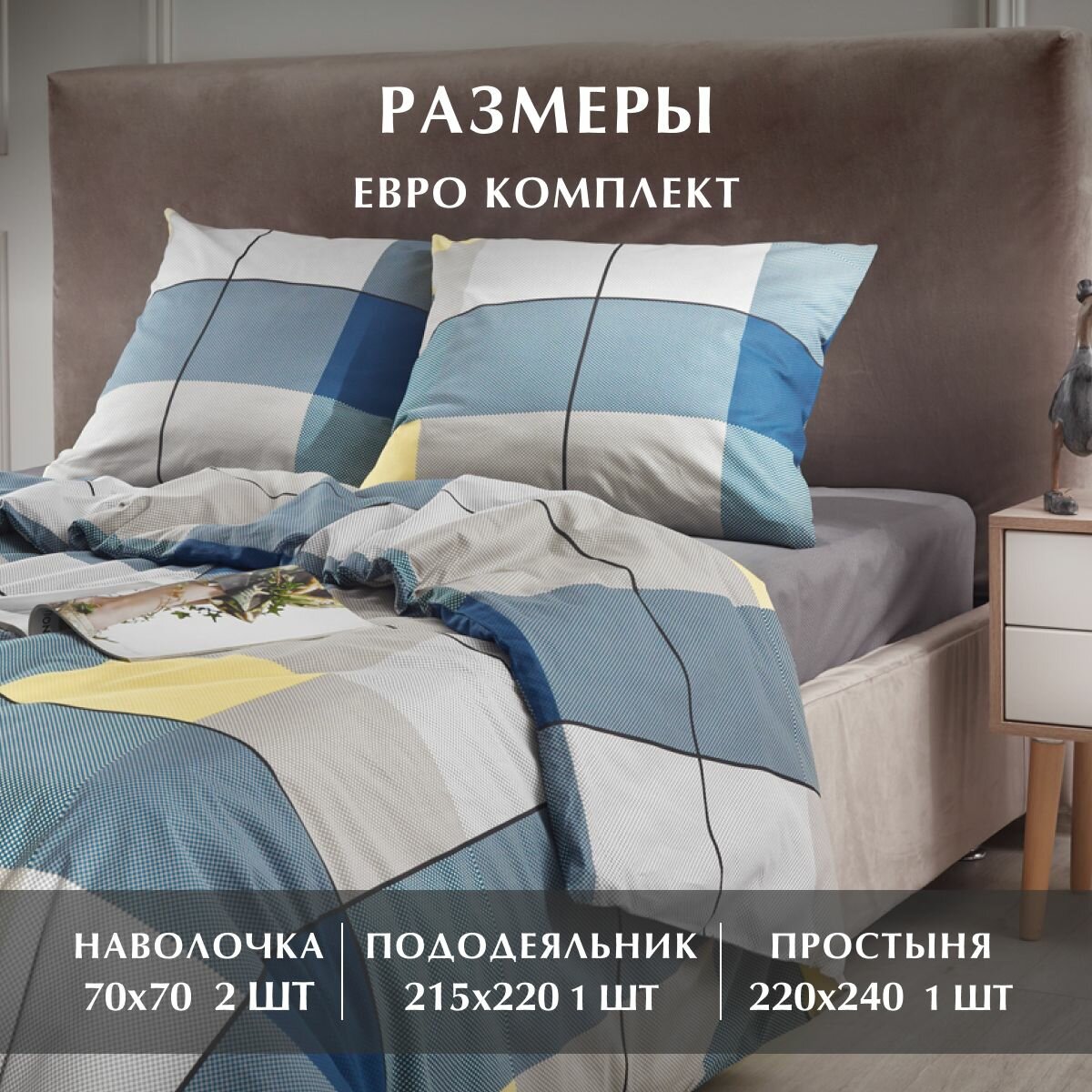Постельное белье Евро комплект, Поплин, 100% хлопок