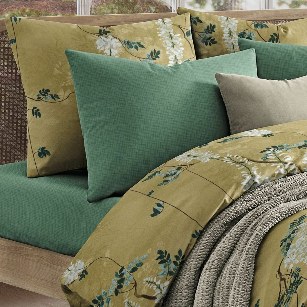 Постельное белье 2 спальный комплект с Евро простыней, Поплин, Guten Morgen, Виридиан, 100% хлопок