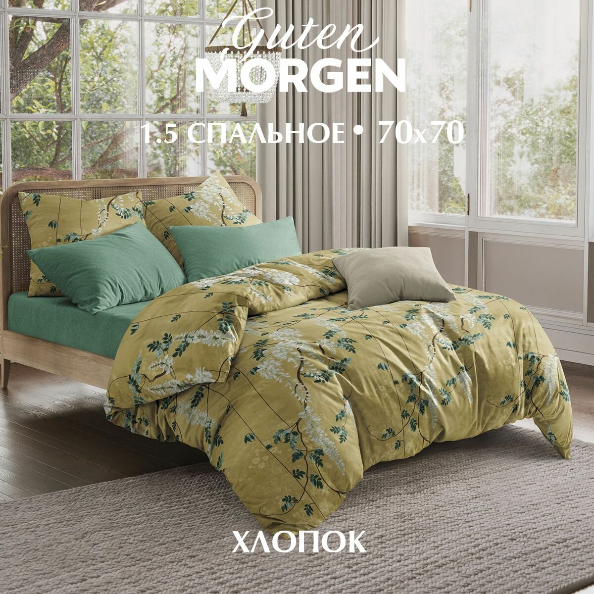 Комплект постельного белья, Guten Morgen, Поплин, 1.5 спальный с нав. 70х70 см