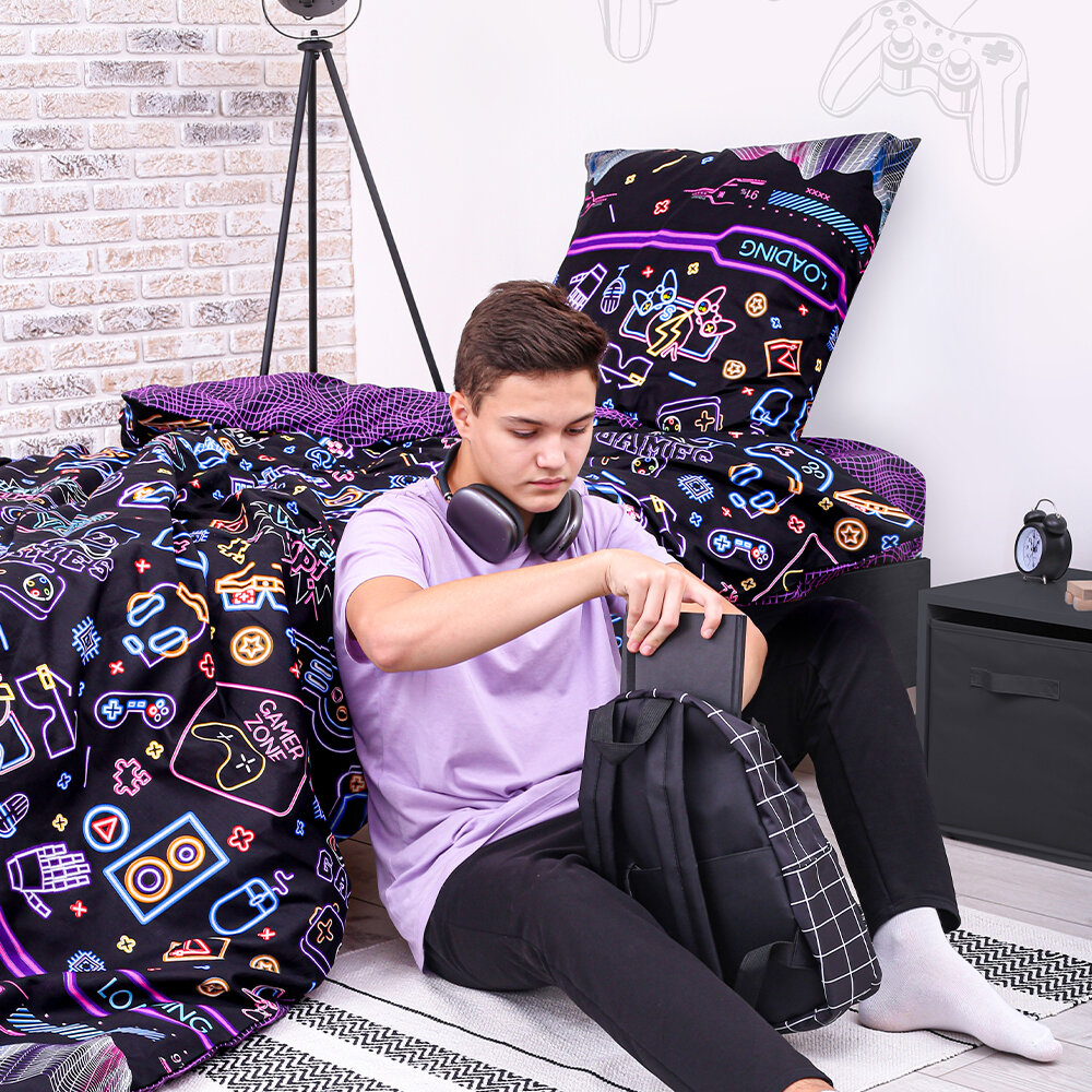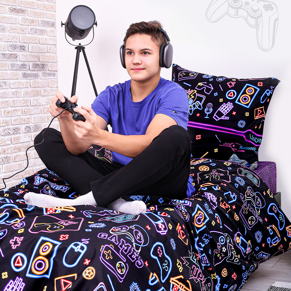 СохранитьПостельное белье для детей и подростков Твой Стиль 1,5-спальное, Поплин, Джойстики интересное: