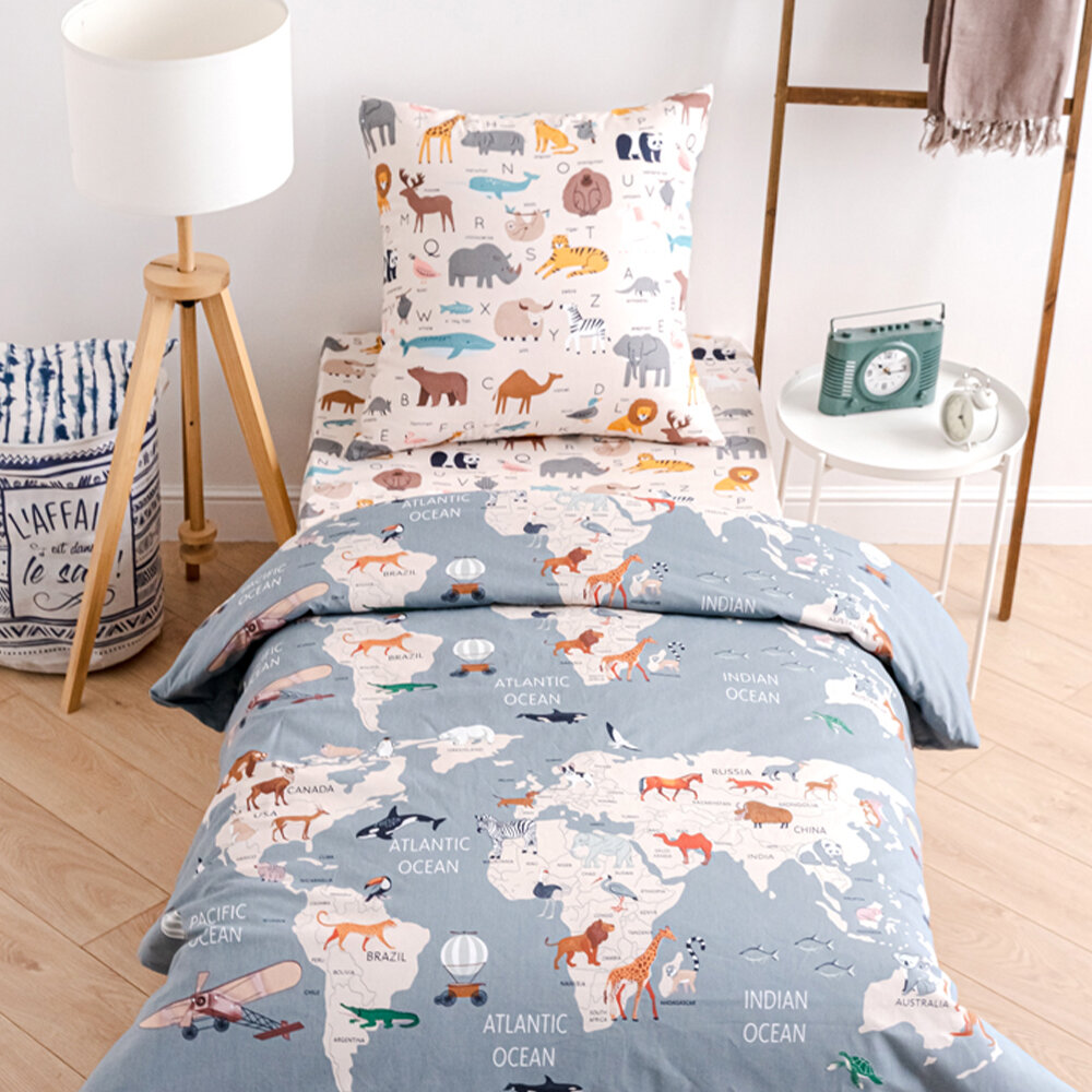 СохранитьПостельное белье для детей и подростков Твой Стиль 1,5-спальное, Поплин, География интересное: