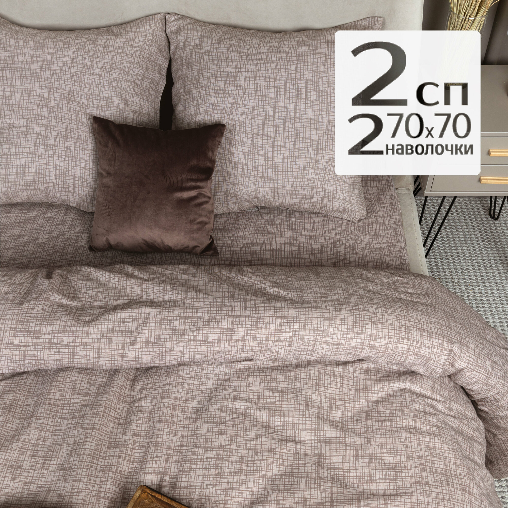 Комплект постельного белья 1,5-спальный (с 2 нав. 70х70) Хлопок, Бязь Galtex Контур бежевый