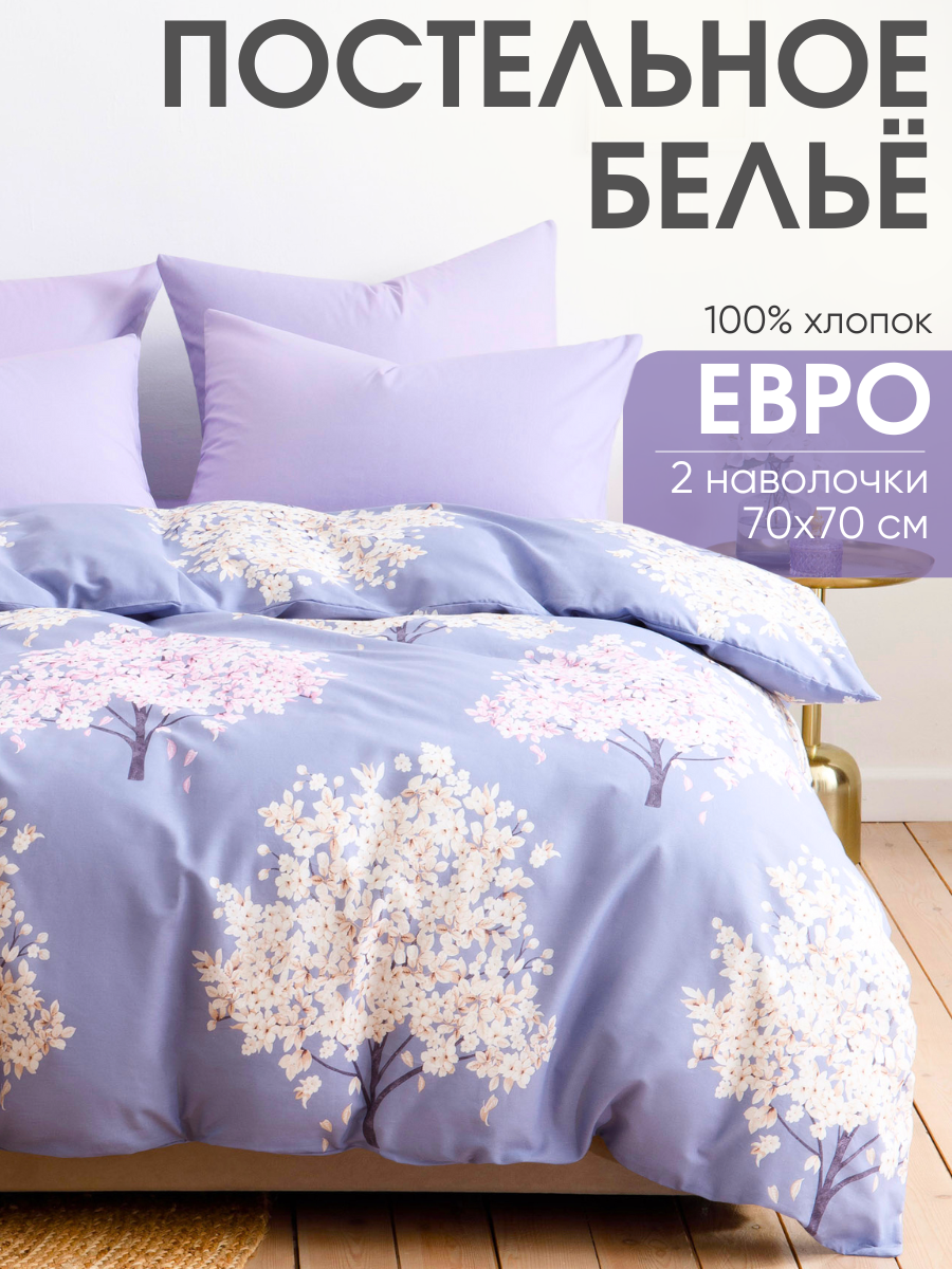 Купить Постельное белье евро, наволочки 70х70 ТМ Ночь Нежна Весенние деревья, 100% хлопок, ткань поплин