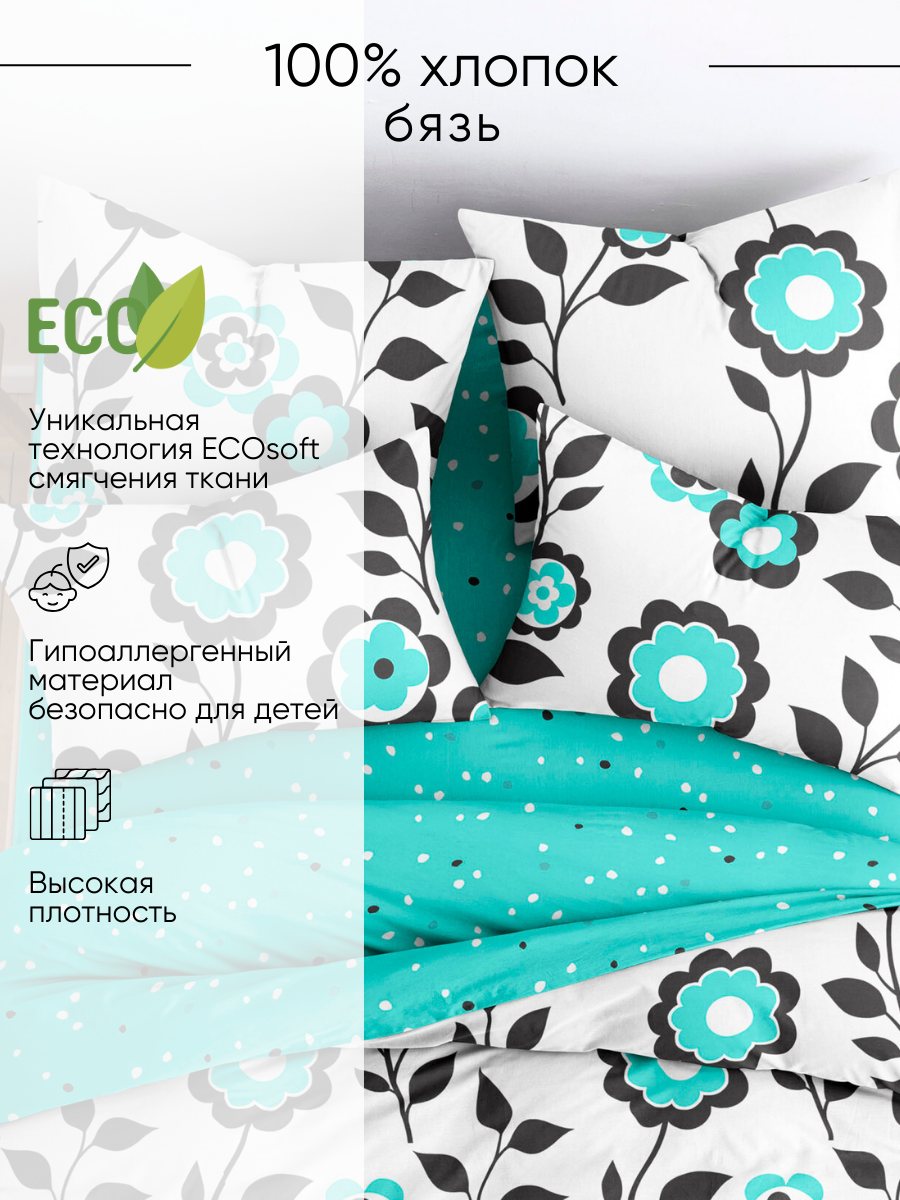 Постельное белье Семейное Поплин (50x70) Ночь Нежна Утренняя свежесть (мята) 70005-2+609
