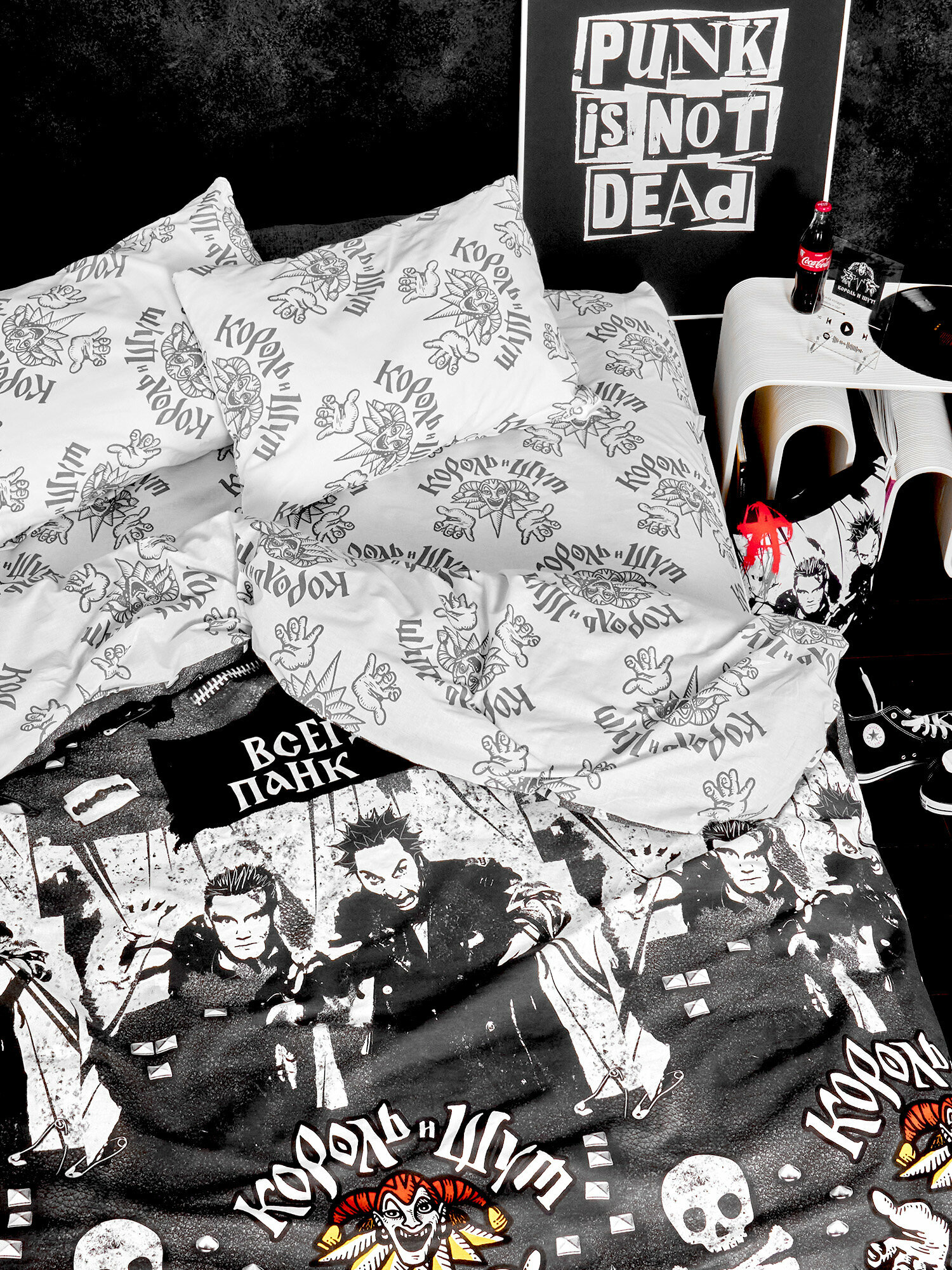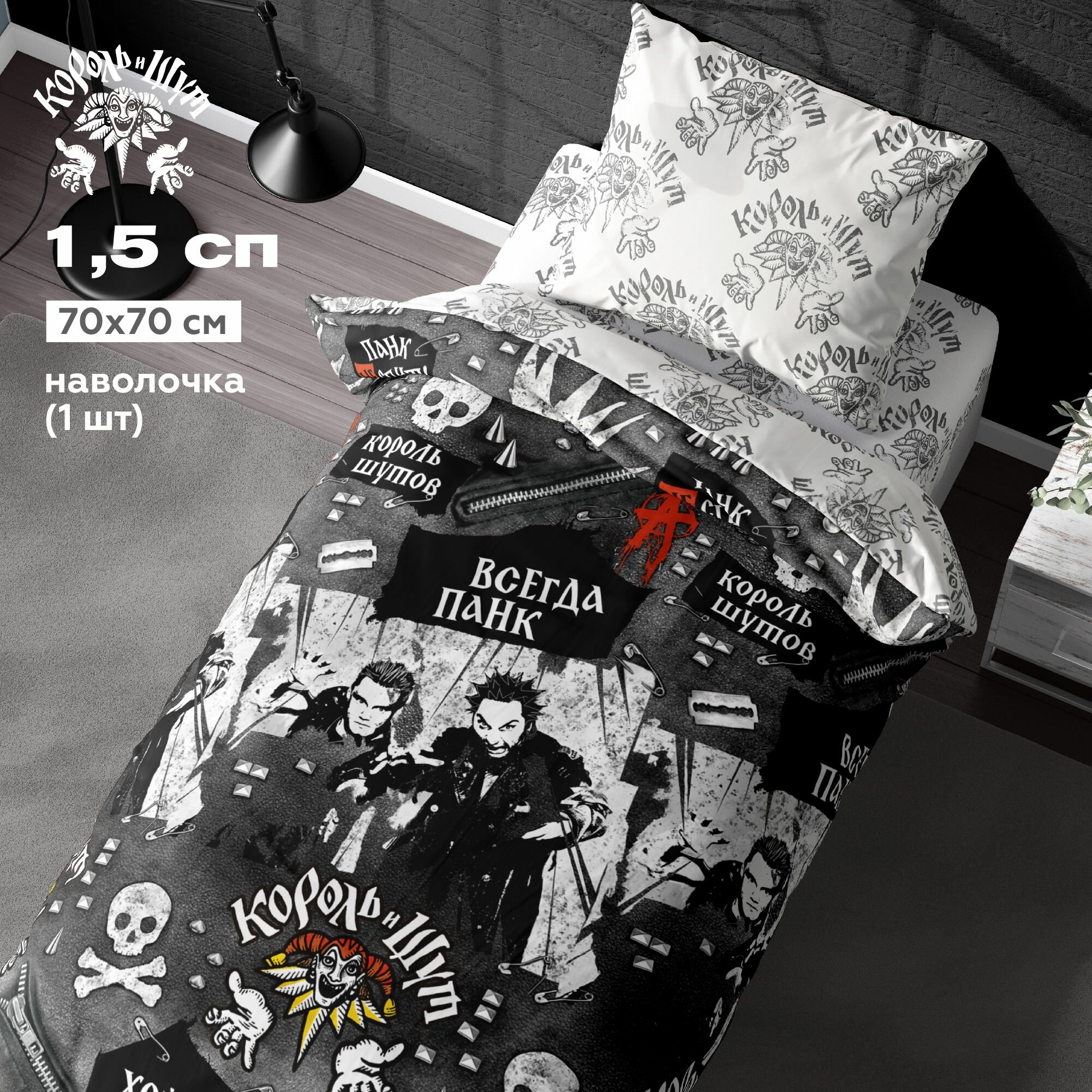 Комплект постельного белья 1,5 спальный Непоседа, перкаль хлопок, 1 наволочка 50х70, Король и Шут / Панки ХОЙ рис. 16775-1/16776-1