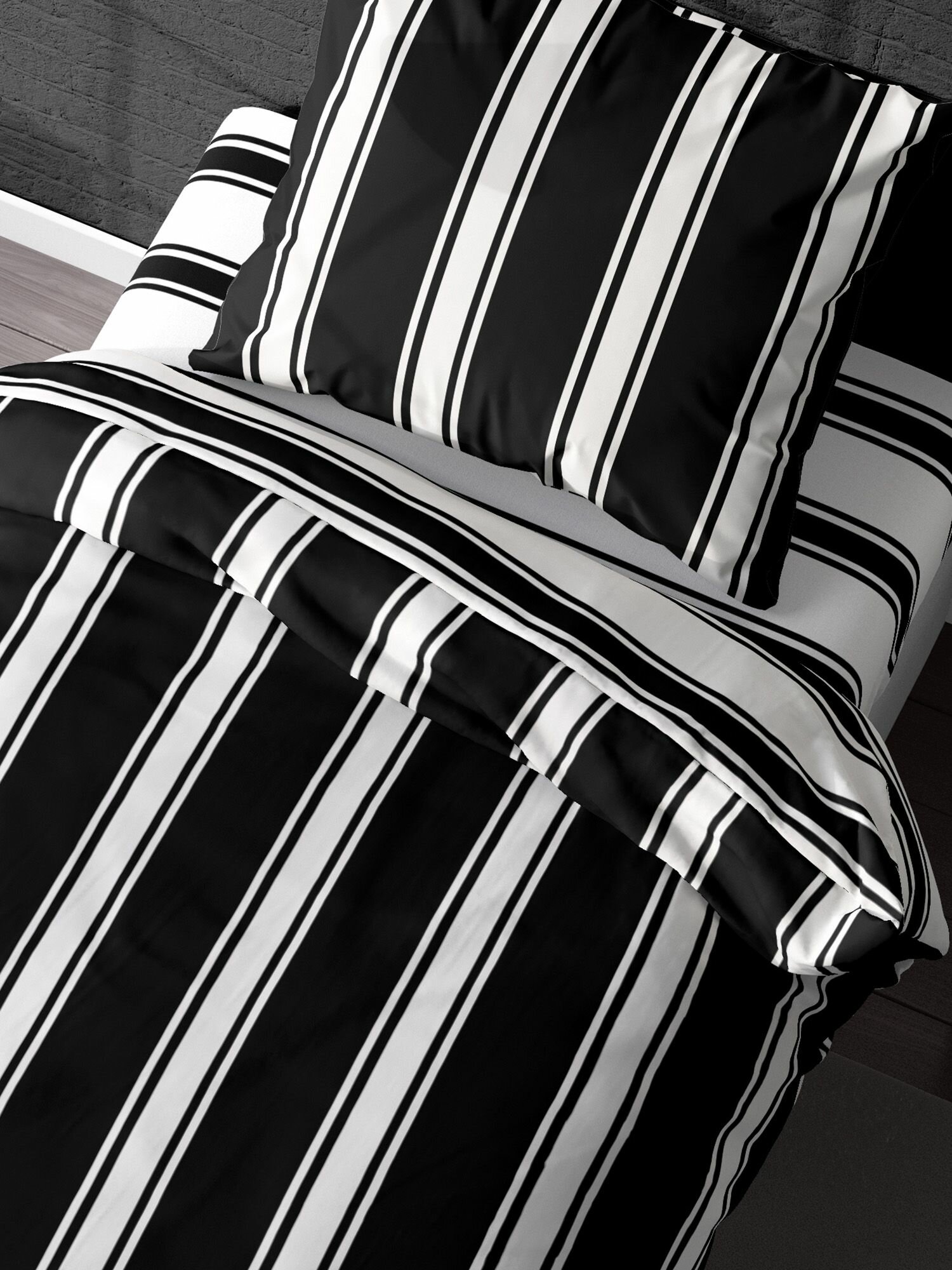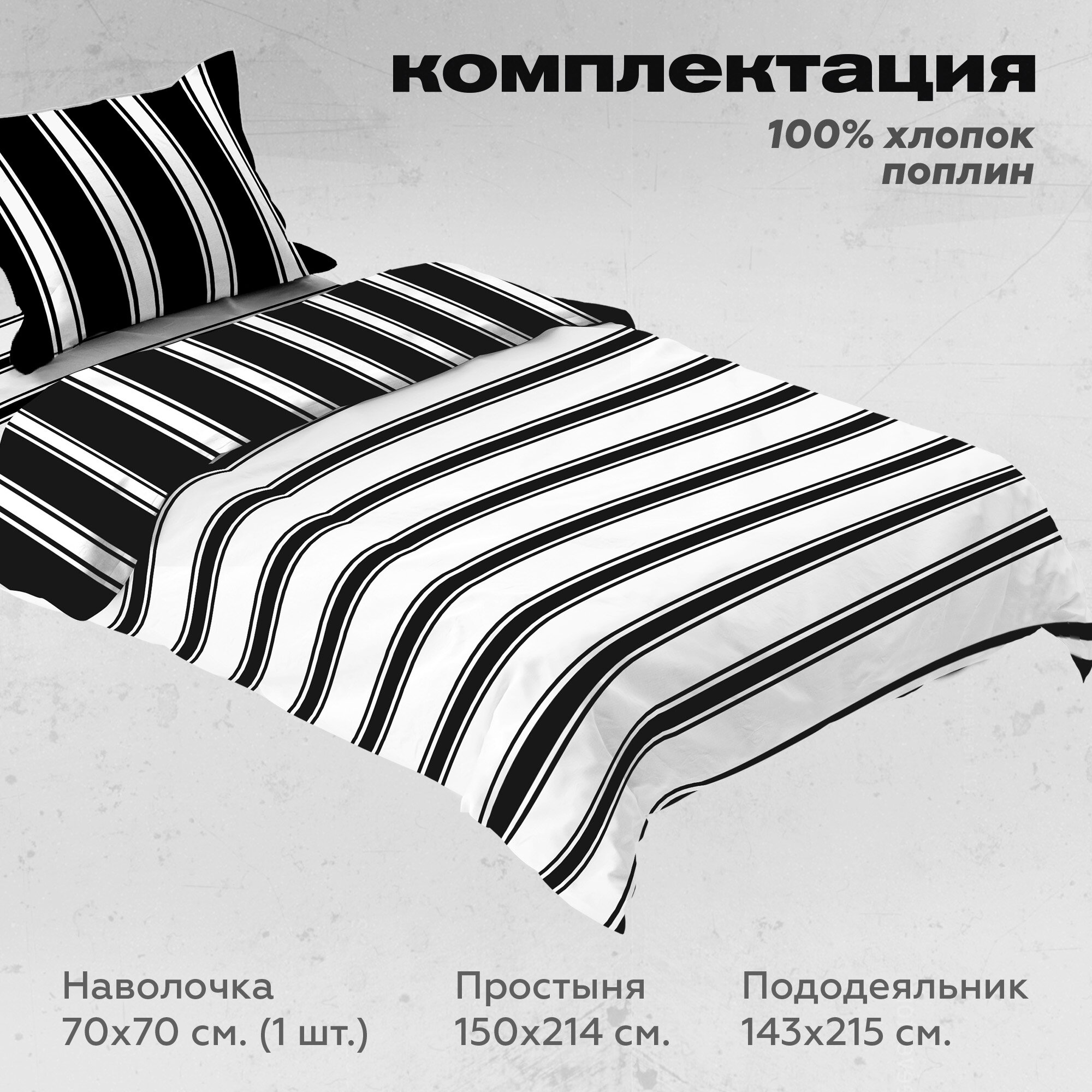 СохранитьПостельное белье 1.5 спальное Crazy Getup, Перкаль, нав. 70х70, Stripes (полоски полосы черно-белое) интересное: