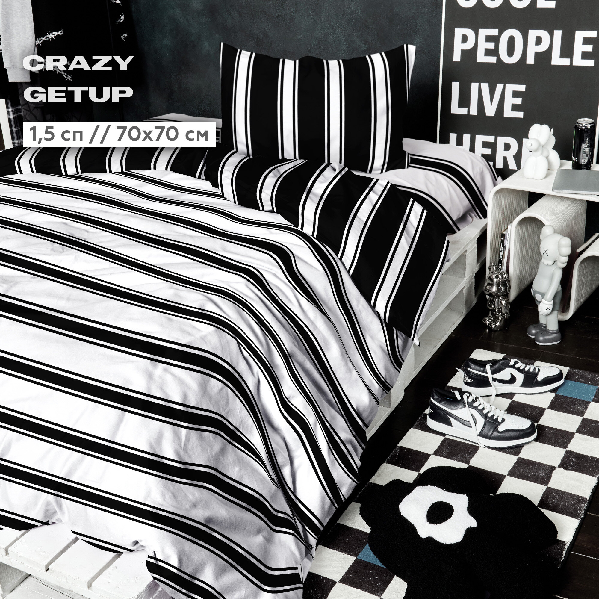Ниже Вы можете прочитать отзывы на Постельное белье 1.5 спальное Crazy Getup, Перкаль, нав. 70х70, Stripes (полоски полосы черно-белое), ознакомится с подробными характеристиками, посмотреть интересные обзоры и фотографии на Постельное белье 1.5 спальное Crazy Getup, Перкаль, нав. 70х70, Stripes (полоски полосы черно-белое).