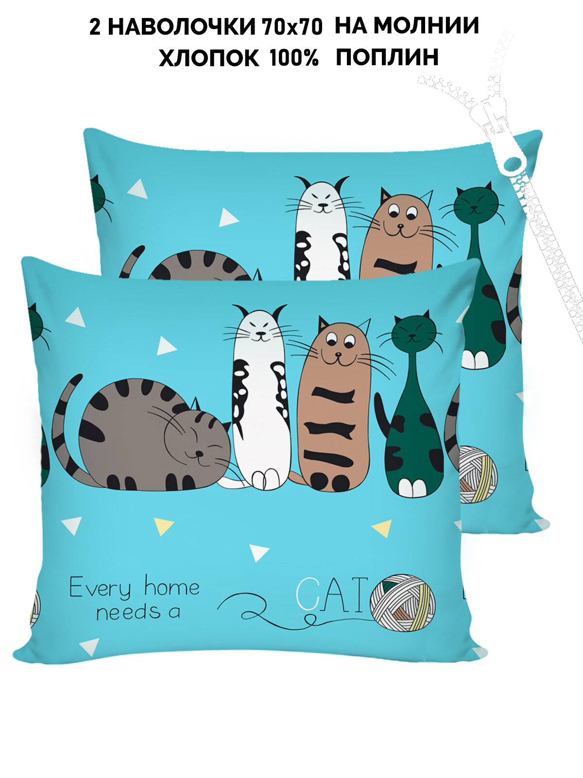 Наволочка 2шт на молнии 70х70 см Сказка "Kitties", ткань перкаль, 100% хлопок