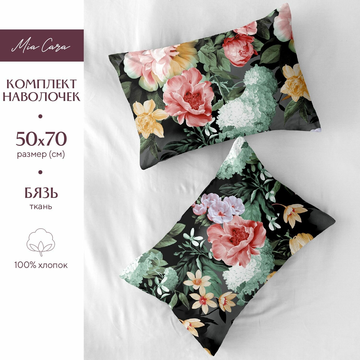 Наволочки 50х70 Mia Cara, Бязь, Хлопок, 2 шт / Комплект наволочек Соблазн 37101-1