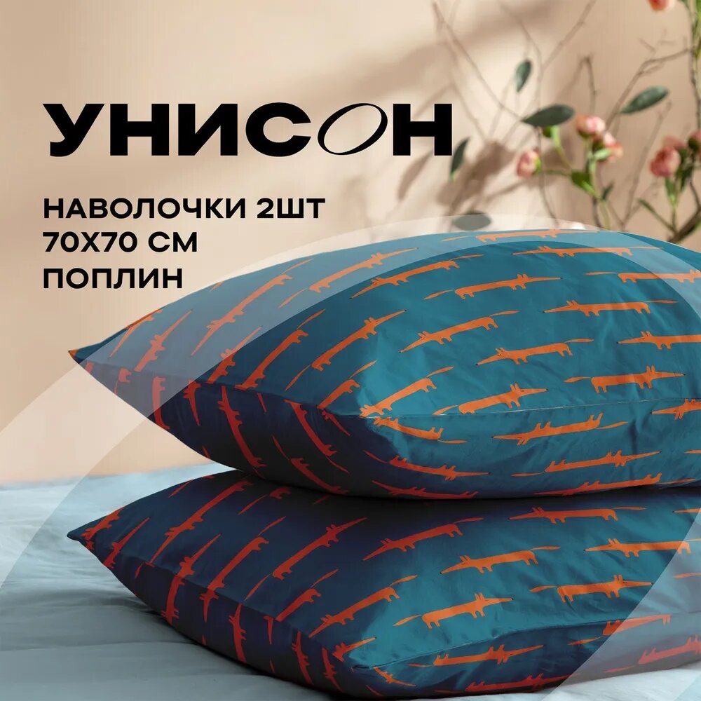 СохранитьНаволочки 70х70 Унисон, Поплин, Хлопок, 2 шт / Комплект наволочек Smart Fox 27071-1 интересное: