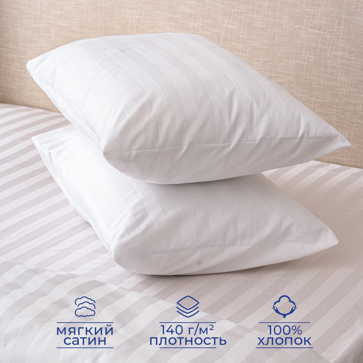 Наволочка HORECA на подушку 50х70 (Страйп 3:3) 1 шт без ушек, сатин, 100% хлопок, для отеля, гостиницы, дома интересное: