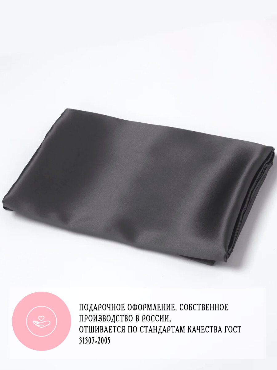Наволочка шелковая 50х70, плотность 22 momme, цвет Черный графит