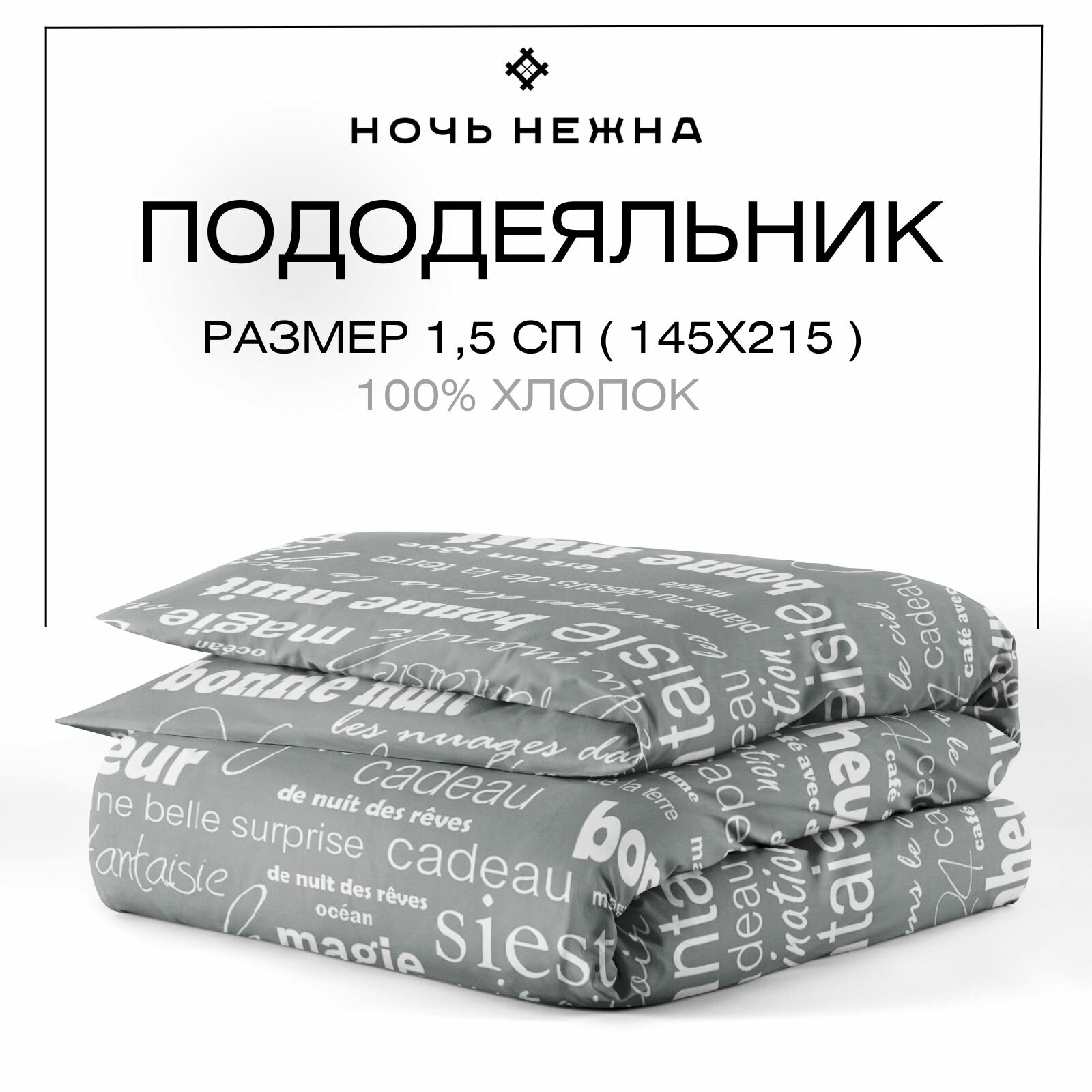Пододеяльник 1 5 спальный 145х215 см, Ночь Нежна Письма, бязь, 100% хлопок интересное:
