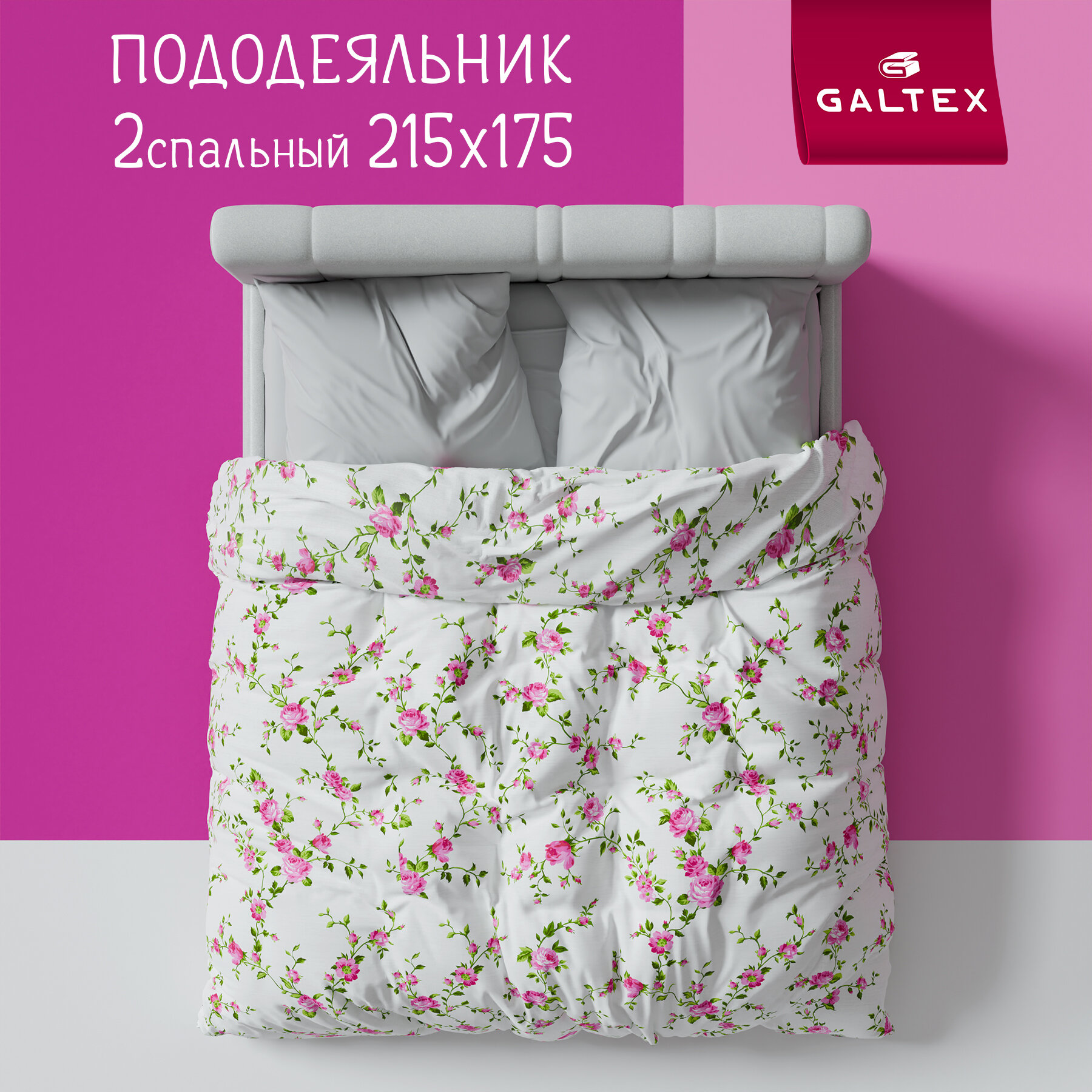 Пододеяльник 2 - спальный Galtex Розы розовый розовый на белом фоне интересное: