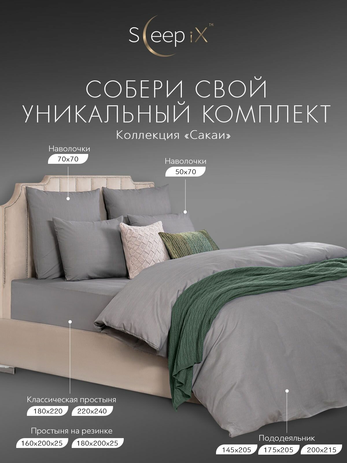 SleepIX Пододеяльник на молнии полуторный "Сакаи" перкаль, хлопок, 145x205, темно-серый